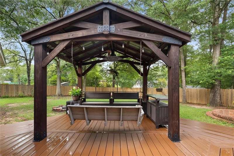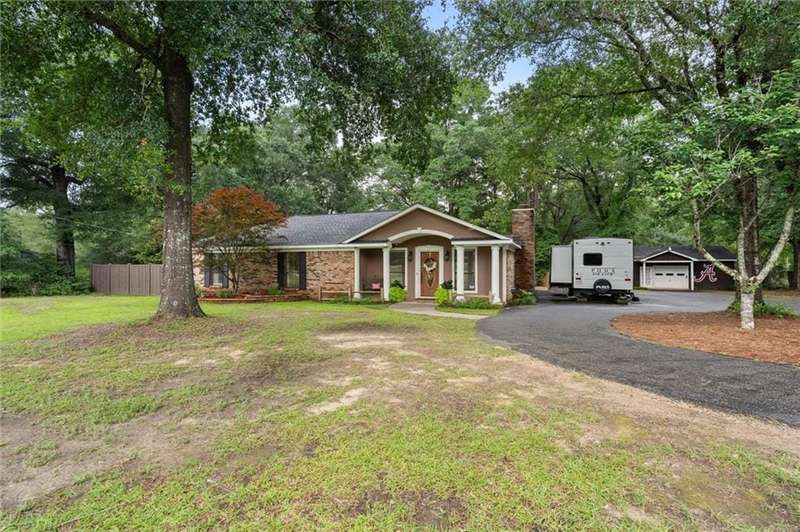 Looking for space, peace, and a bit of nature? This updated 4-bedroom, 3-bath home sits on 2 partially wooded acres with a live creek running through the back of the property, Perfect for relaxing, hosting family picnics, or private backyard party. the home has been remodeled and thoughtfully updated, so it's move-in ready. One of the bedrooms is set up as a perfect mother-in-law suite with its own private entrance, walk-in closet, and a separate heating and cooling system- Ideal for extended family, guests, or even a home office set up. Step outside and enjoy the two-level composite deck with a 10' x 12' gazebo Ideal for quiet mornings or evening get-togethers. There's a huge backyard with tons of potential, and a 20' x 40' workshop plus an 8' x 10' metal storage building for all your projects or gear. The large, paved driveway can easily fit up to 10 cars. The home also comes with practical upgrades like a new fortified roof (2022), two water heaters, updated HVAC (2020), and newer septic field lines (2019). Plus, the termite bond is transferrable for extra peace of mind. You're just minutes away from shopping, the interstate, and both public and private schools. This property offers the best of peaceful country vibes with everyday convenience. Seller reserves the swing on the back porch and the security system equipment. Schedule all showings through Showing Time. owner occupied and a minimum of 4- hour notice is required for all showings. Please make sure that the prospective buyers have pre-approval letter with a reputable lender or have proof of funds before scheduling a showing. Buyer to verify all the information during due diligence!