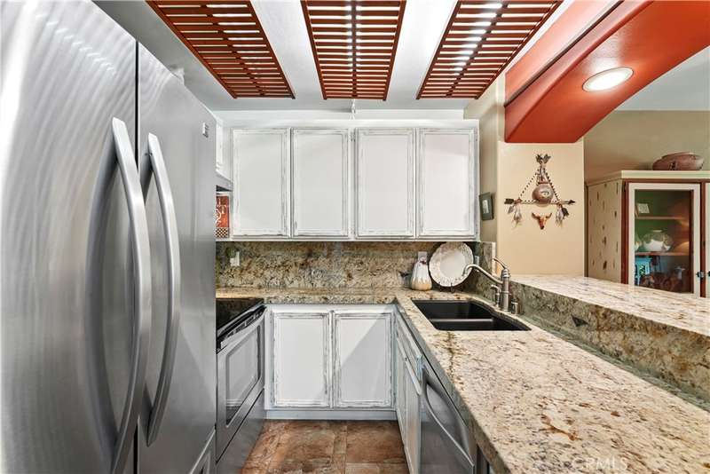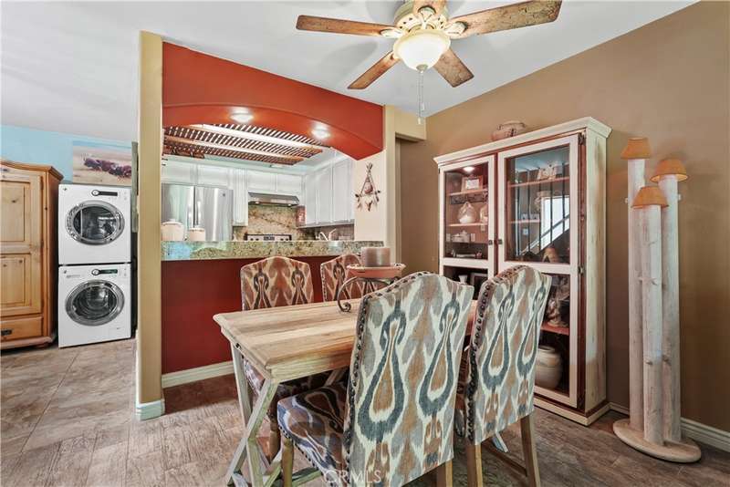 Two-Car GARAGE, Laundry Hook-Ups and a stellar View!!! You've got to check out this beautifully updated 1-bedroom, 1-bath loft style condo in the scenic El Dorado Lakes community in Long Beach. The thoughtfully designed open floor plan seamlessly connects the kitchen, dining area, and living room creating a cohesive and inviting living environment. The interior boasts warm earthy tones, smooth scraped ceilings, bullnosed corners, rustic tile flooring, an updated kitchen with distressed-white cabinetry, granite countertops, stainless steel appliances and a breakfast bar - perfect for cooking and entertaining. In the living room abundant natural light streams through the large, double-pane vinyl sliding door and transom window enhancing the overall ambiance. Pass through the sliding door to the private patio offering a tranquil space to enjoy the beautiful water view while savoring morning coffee or unwinding in the evening. The upper floor hosts a spacious bedroom and bathroom both upgraded with new carpet in the bedroom and tile floors in the bath. The inviting spa-like bath showcases stunning slate-like tile, complemented by granite countertops at the vanity. Adjacent to the bathroom is the large walk-in closet providing ample space for your personal items. In addition to the aesthetic upgrades practical improvements include: in-unit laundry hook-ups, a new dishwasher, new carpet in bedroom and on stairs, and a detached double-car garage just steps away from the unit. The El Dorado Lakes community itself is a picturesque complex offering a range of amenities such as two community pools, tennis courts, a clubhouse, and a fitness center. And of course, the gorgeous water features, abundant wildlife and greenery that make El Dorado Lakes sought after.