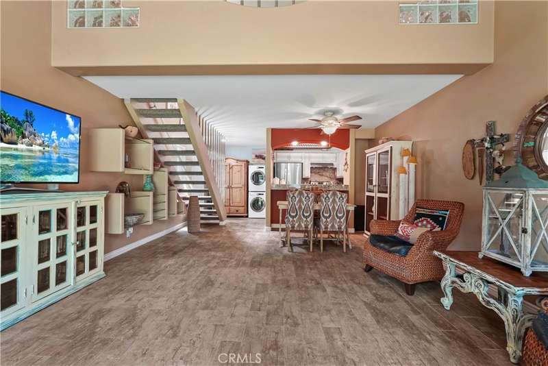 Welcome to this beautifully updated 1-bedroom, 1-bath loft style condo in the scenic El Dorado Lakes community in Long Beach. The thoughtfully designed open floor plan seamlessly connects the kitchen, dining area, and living room creating a cohesive and inviting living environment. The interior boasts warm earthy tones, smooth scraped ceilings, bullnosed corners, rustic tile flooring, an updated kitchen with distressed-white cabinetry, granite countertops, stainless steel appliances and a breakfast bar - perfect for cooking and entertaining. In the living room abundant natural light streams through the large, double-pane vinyl sliding door and transom window enhancing the overall ambiance. Pass through the sliding door to the private patio offering a tranquil space to enjoy the beautiful water view while savoring morning coffee or unwinding in the evening. The upper floor hosts a spacious bedroom and bathroom both upgraded with new carpet in the bedroom and tile floors in the bath. The inviting spa-like bath showcases stunning slate-like tile, complemented by granite countertops at the vanity. Adjacent to the bathroom is the large walk-in closet providing ample space for your personal items. In addition to the aesthetic upgrades practical improvements include: in-unit laundry hook-ups, a new dishwasher, new carpet in bedroom and on stairs, and a detached double-car garage just steps away from the unit. The El Dorado Lakes community itself is a picturesque complex offering a range of amenities such as two community pools, tennis courts, a clubhouse, and a fitness center. And of course, the gorgeous water features, abundant wildlife and greenery that make El Dorado Lakes sought after.