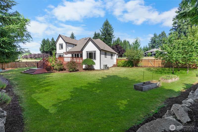 Located in the coveted gated community of Winter Pond, this impressive home sits on a private shy ½-acre lot w/no neighbors directly behind or on one side. Interior features include fresh paint throughout, 9ft ceilings + a 20ft vault, A/C, 2 gas fireplaces, formal living/dining rooms, a main floor office w/French doors, plus a spacious upstairs bonus room. The oversized primary suite on the main level offers a 5pc bath w/jetted tub & walk-in closet. Kitchen is equipped w/SS appliances, gas range, herringbone tile backsplash, quartz counters & a pantry w/stylish barn doors that’s plumbed for a wet bar. Step outside to a massive new deck overlooking a fully fenced yard—perfect for entertaining. RV parking, sprinkler system & generator hookup.