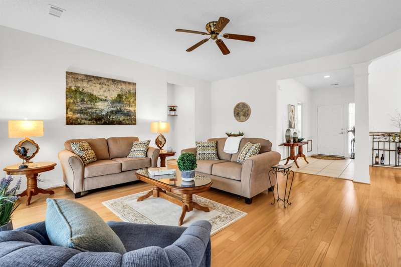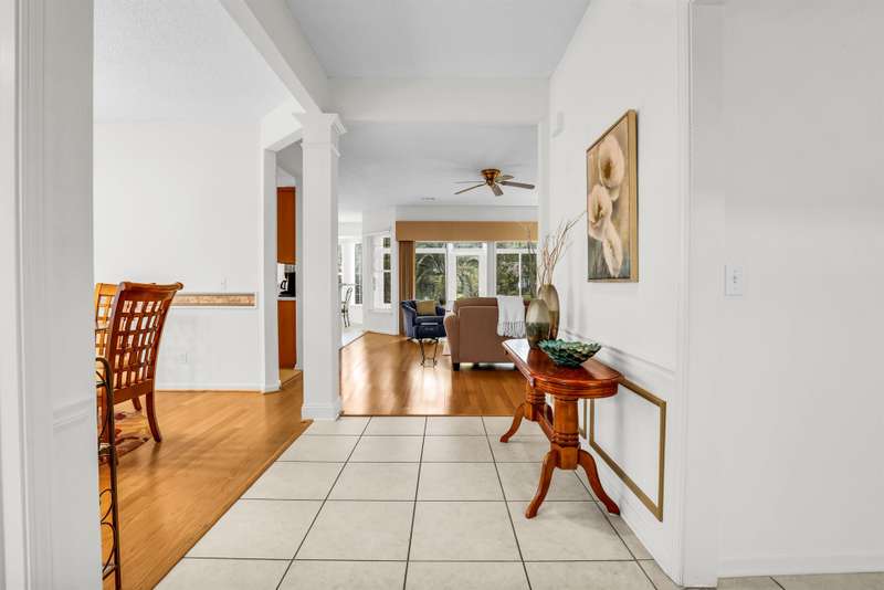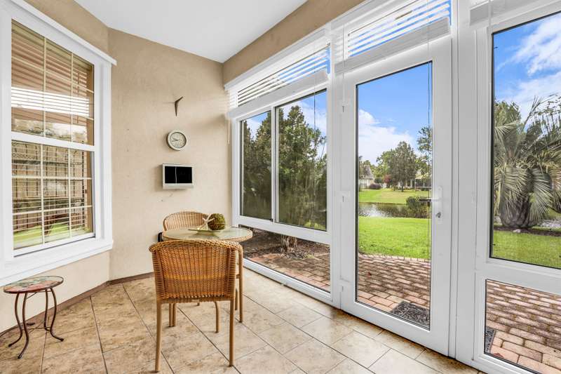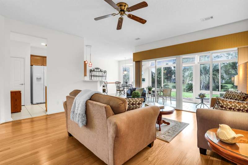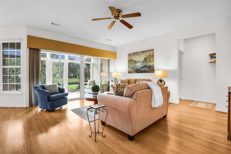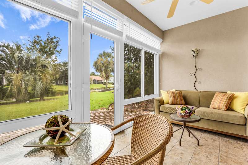Welcome Home! This desirable Crane floor plan sits on a quiet cul-de-sac near Hidden Cypress amenities. Enjoy the enclosed porch with peaceful views of cranes, herons, and egrets. Inside, the home offers 2 bedrooms, 2 baths, and a versatile den/office with French doors. The eat-in kitchen with bay window is perfect for casual meals, while the formal dining area is open to the Great Room. The primary suite features a bay window, walk-in closet, and bath with double vanities, soaking tub, and separate shower. The guest bedroom and full bath is in a separate area which provides privacy for your guests. The laundry room connects to a 2-car garage with pull-down stairs to attic storage. Located in Sun City Hilton Head, an active adult community with 100+ clubs, community theater, softball league, woodworking shop, dog park, and endless amenities.