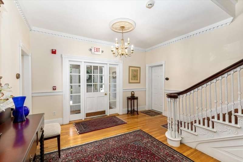 Charming 2-bedroom end unit in elegant PHILLIPS ESTATES walking distance to Phillips Academy, Pike School & downtown Andover w/ easy access to Rtes 93 & 495. Set in a historic 1984 Greek Revival mansion on 1.5 acres, this bright home blends old-world charm w/modern comforts. Enter through stunning Foyer. Features include 9' ceilings, hardwood floors throughout, detailed molding, window seat & unique round windows. The white kitchen offers granite counters. The living room fireplace bears the Latin inscription AD FOCVM COR CALIDVM "At the hearth, a warm heart" symbolizing a welcoming home. The Main bedrm reads AMICIS ET LIBRIS QVID MELIVS "There is nothing better than friends and books." Enjoy in-unit laundry (additional coin-op units in basement) & excellent deeded storage. Freshly painted rooms, a deck off the second bedroom & 2 deeded parking spots complete this impressive condo. Well-maintained grounds & common areas make this a perfect carefree lifestyle or ideal summer retreat.