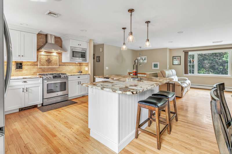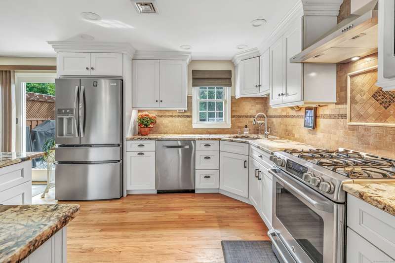 Stunning Raised Ranch in Sought-After Settlers Woods! Welcome to this beautifully updated raised ranch offering the perfect blend of indoor comfort and outdoor fun, this home is truly move-in ready - and won't last in this low-inventory market! Step inside to an open-concept living space that seamlessly connects the living room, dining area, and remodeled kitchen. Enjoy cozy nights by the fireplace, and summer days entertaining guests on the multi-level deck overlooking a large, oval-shaped heated pool - all within a fully fenced-in, private backyard oasis. Main level offers 3 bedrooms and a remodeled full bath. The lower level includes a second remodeled full bath, separate laundry room, home office, family room, and an additional room ideal for a guest space, playroom, or hobby area. Direct access to the garage from the lower level. Located just 2 miles from Woodmont Beaches and 2.5 miles from the Milford Metro-North train station and downtown shops, restaurants, and entertainment.