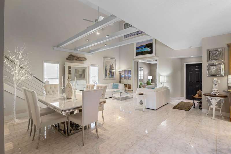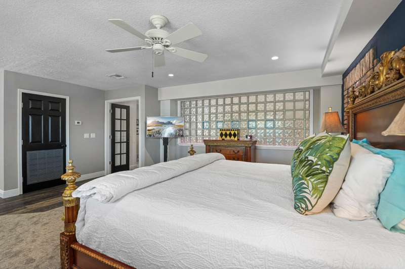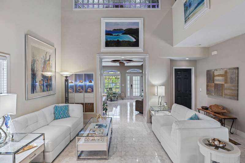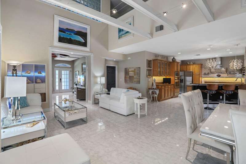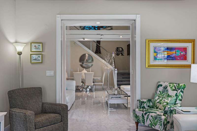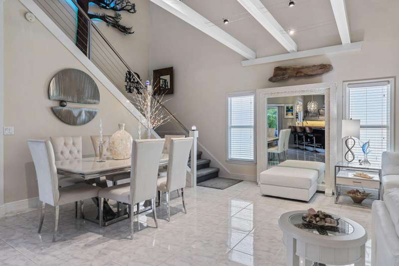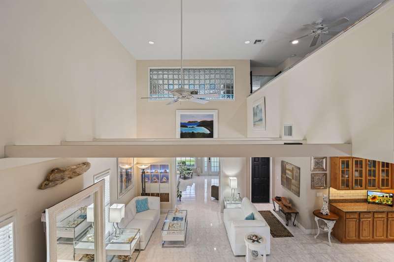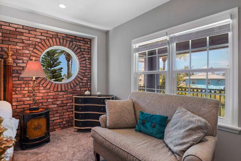 Location, location! Just steps from the beach, restaurants, bars and the famous Fort Pierce Inlet. Unique Key West style home, with 3 covered balconies, Island views and many custom smart features. Enter into a separate living area which opens into a large great room with soaring 20 ft ceilings. Two primary bedrooms, one downstairs with its own private En Suite with a walk out to the tropical garden, and one upstairs with its own separate living area, a private balcony that faces the ocean, a huge walk in closet and private En Suite. An upstairs guest bedroom with a separate bath, and another large balcony that views the tropical backyard. Entertain many friends in the open great room, kitchen and dinning area. A chefs kitchen with, a oversized butlers pantry for abundant storage for