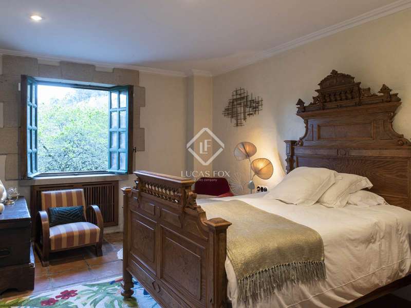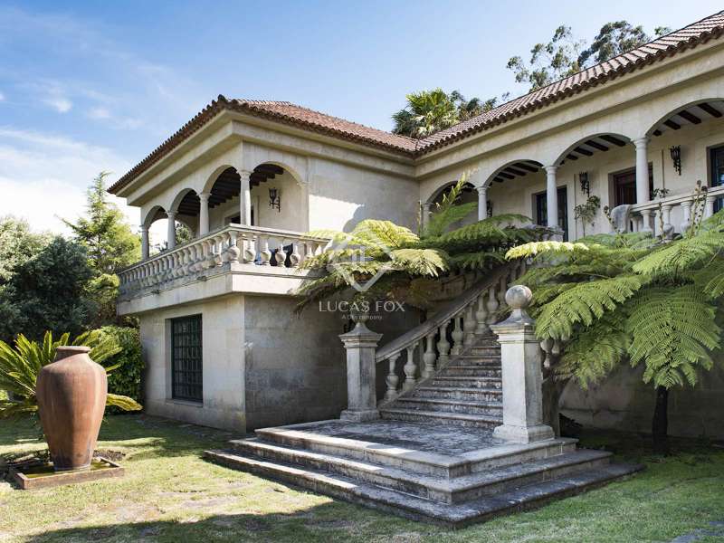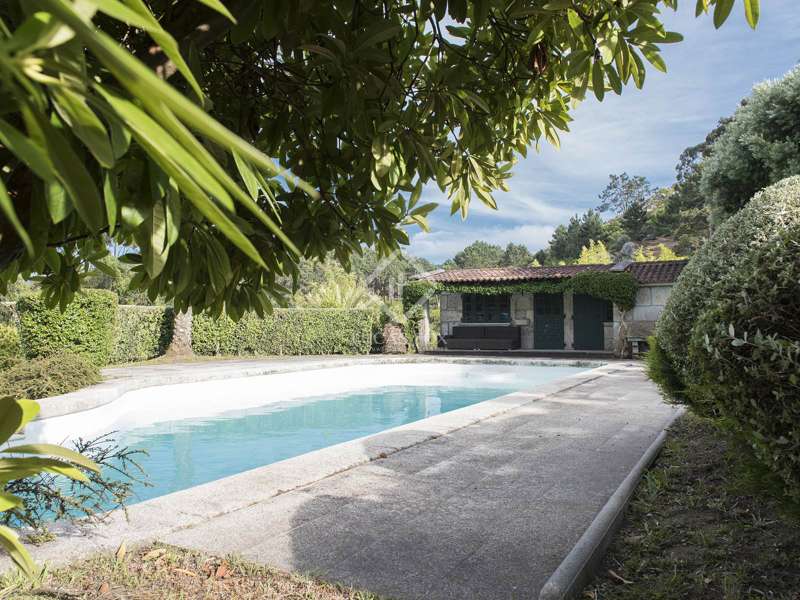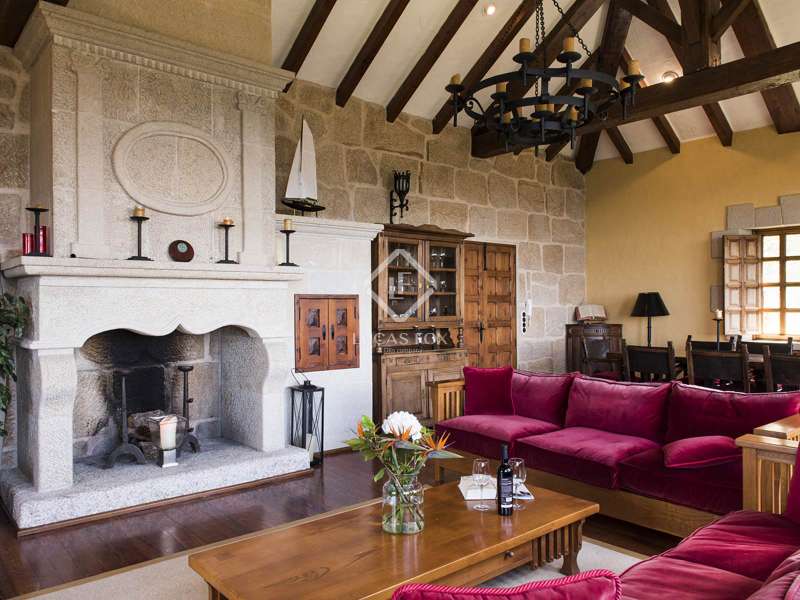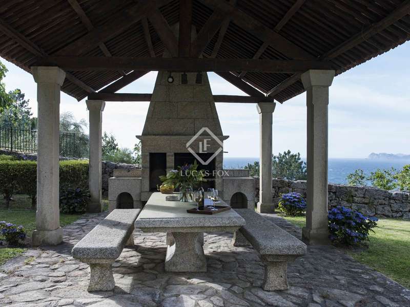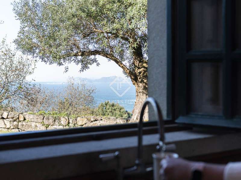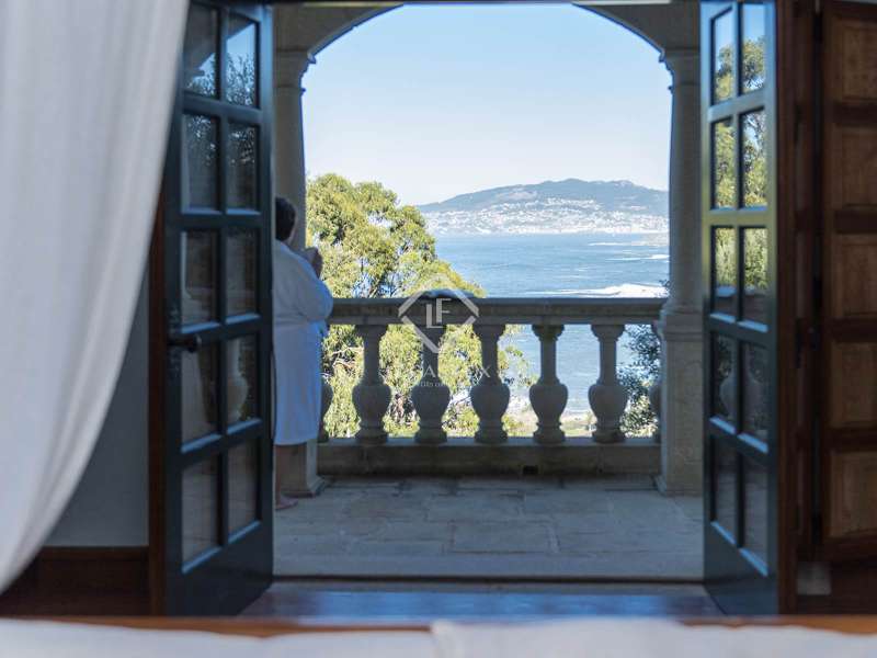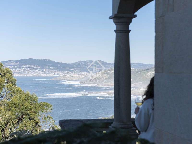 This is the ideal lifestyle property for anyone looking for elegance, privacy, investment and location. One of the most exclusive mansions for sale on the south coast of the Rias Baixas, with a unique design, layout, stone finish and location at the tip of a coastal cape. It is found in a residential area surrounded by natural forest land and offering the most breathtaking views of the Atlantic Ocean, the Cies Islands and the coastal fishing town of Baiona. The large property measuring a total of almost 4,000 sqm is finished with a 3.5-metre high perimeter stone wall, offering good security and privacy. Once inside, we are welcomed by a cobblestone path that leads us to the mansion's main entrance and other garden areas. Wonderful experiences await us inside the property, surrounded by tall trees and lovely views. The landscaping was designed to make this area peaceful and to shelter it from the wind, thanks to its strategic location. All you experience is the sound of the waves breaking on the coastal terrain. The mansion's design is all stone finished and has significant open levels of space, with two grand entrances and dual aspect windows offering breathtaking views in many rooms, making this a superb home for entertaining and tranquillity at the end of the day, with sunsets on this Atlantic Ocean side. The grand reception hall with an impressive 6-metre high ceiling and a vast stone staircase leads us to the left and right-wing of the mansion. We find a large, fully equipped eat-in kitchen with a grand stone fireplace and access to the outdoor dining area in the garden. A library room in this same area can be used as a study, office, or converted into another bedroom if needed. We find a guest toilet, two large bedrooms, fitted wardrobes, and private bathrooms on the right-wing. All areas offer abundant natural light and sea views, except for one bedroom that offers views of the natural forest. On the first floor, we find the grand dining and living room area, with 4 meter high vaulted high ceilings, a wood-burning large stone fireplace and a small balcony terrace overlooking the front garden, the Atlantic Ocean and the coastal town of Baiona. This area offers fantastic experiences for families and friends or maybe important business meetings. We find a guest toilet and the main en-suite bedroom on the same level. The main bedroom has a fitted wardrobe dressing area, and the sleeping area offers a small balcony terrace overlooking the front garden. A splendid section to enjoy every new day. This level offers the grand north entrance from the front garden. The wide stone-built staircase welcomes family and friends to the dining and living room area. We find the vintage wine cellar at the level below, perfect for wine enthusiasts to enjoy and ideal room temperature. There is also a guest bedroom with its bathroom, a parking garage for two vehicles and a utility room. The mansion is finished with high-end imported materials from the United Kingdom. The garden area is where the can enjoy the property with its infinity pool overlooking the ocean, with the sound of the waterfall and the waves breaking on the coastal terrain. There is also a small vineyard (285 sqm), the outdoor dining area with a fantastic gas-burning barbecue and charcoal. The garden benefits from chill-out areas, a small pond, a dog kennel and mature trees, plants and flowers. An ideal property for a family, entrepreneur or couple looking for an exclusive property to entertain, enjoy, privacy and location. A standout luxury mansion with spectacular views of the Rias Baixas and the Atlantic Ocean.