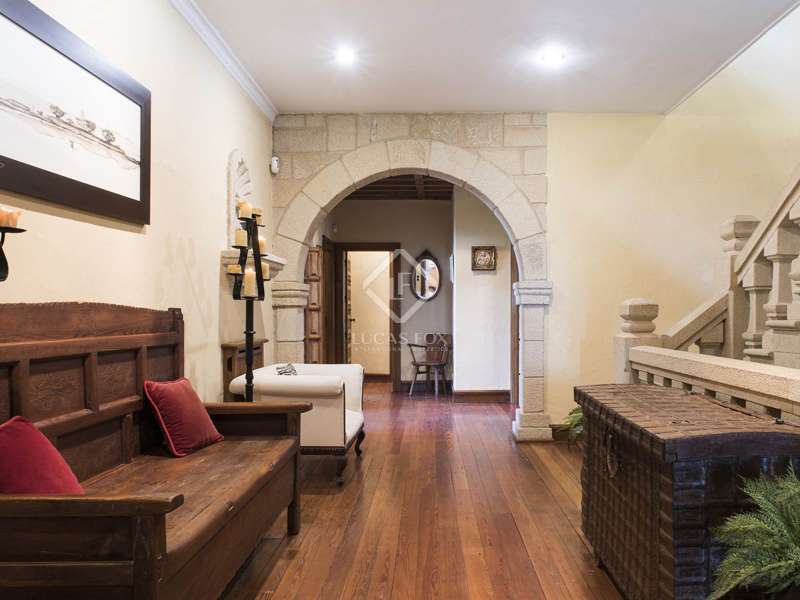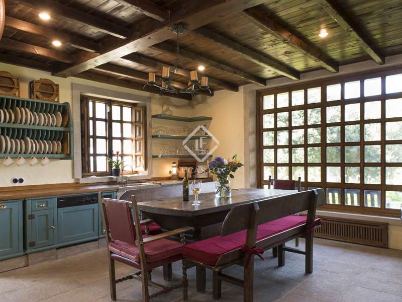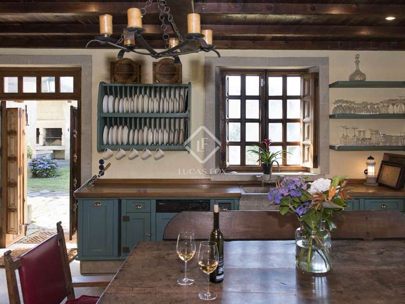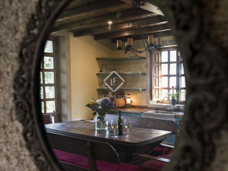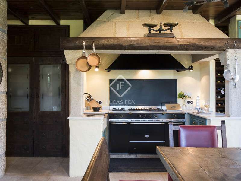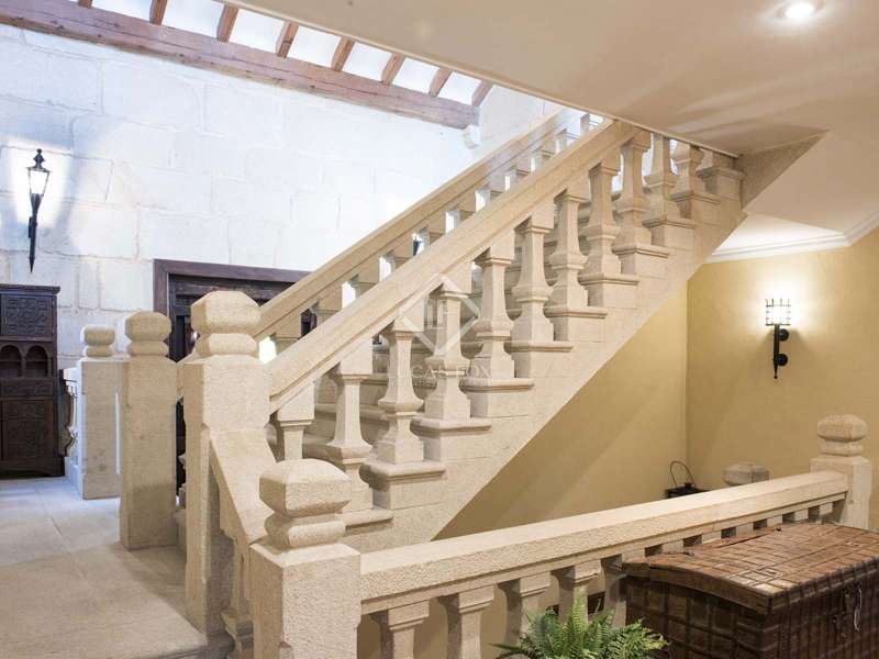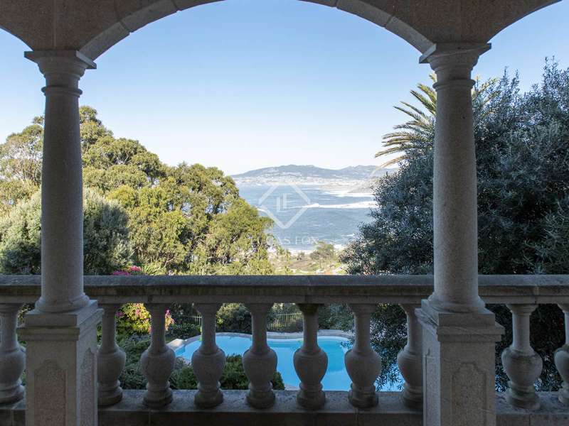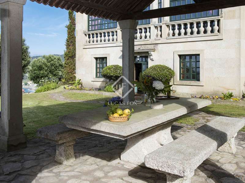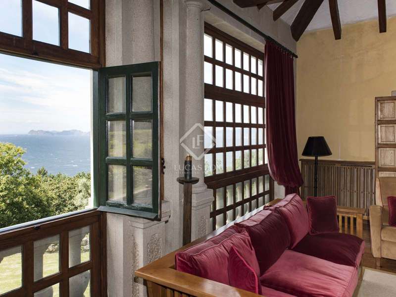 This is the ideal lifestyle property for anyone looking for elegance, privacy, investment and location. One of the most exclusive mansions for sale on the south coast of the Rias Baixas, with a unique design, layout, stone finish and location at the tip of a coastal cape. It is found in a residential area surrounded by natural forest land and offering the most breathtaking views of the Atlantic Ocean, the Cies Islands and the coastal fishing town of Baiona. The large property measuring a total of almost 4,000 sqm is finished with a 3.5-metre high perimeter stone wall, offering good security and privacy. Once inside, we are welcomed by a cobblestone path that leads us to the mansion's main entrance and other garden areas. Wonderful experiences await us inside the property, surrounded by tall trees and lovely views. The landscaping was designed to make this area peaceful and to shelter it from the wind, thanks to its strategic location. All you experience is the sound of the waves breaking on the coastal terrain. The mansion's design is all stone finished and has significant open levels of space, with two grand entrances and dual aspect windows offering breathtaking views in many rooms, making this a superb home for entertaining and tranquillity at the end of the day, with sunsets on this Atlantic Ocean side. The grand reception hall with an impressive 6-metre high ceiling and a vast stone staircase leads us to the left and right-wing of the mansion. We find a large, fully equipped eat-in kitchen with a grand stone fireplace and access to the outdoor dining area in the garden. A library room in this same area can be used as a study, office, or converted into another bedroom if needed. We find a guest toilet, two large bedrooms, fitted wardrobes, and private bathrooms on the right-wing. All areas offer abundant natural light and sea views, except for one bedroom that offers views of the natural forest. On the first floor, we find the grand dining and living room area, with 4 meter high vaulted high ceilings, a wood-burning large stone fireplace and a small balcony terrace overlooking the front garden, the Atlantic Ocean and the coastal town of Baiona. This area offers fantastic experiences for families and friends or maybe important business meetings. We find a guest toilet and the main en-suite bedroom on the same level. The main bedroom has a fitted wardrobe dressing area, and the sleeping area offers a small balcony terrace overlooking the front garden. A splendid section to enjoy every new day. This level offers the grand north entrance from the front garden. The wide stone-built staircase welcomes family and friends to the dining and living room area. We find the vintage wine cellar at the level below, perfect for wine enthusiasts to enjoy and ideal room temperature. There is also a guest bedroom with its bathroom, a parking garage for two vehicles and a utility room. The mansion is finished with high-end imported materials from the United Kingdom. The garden area is where the can enjoy the property with its infinity pool overlooking the ocean, with the sound of the waterfall and the waves breaking on the coastal terrain. There is also a small vineyard (285 sqm), the outdoor dining area with a fantastic gas-burning barbecue and charcoal. The garden benefits from chill-out areas, a small pond, a dog kennel and mature trees, plants and flowers. An ideal property for a family, entrepreneur or couple looking for an exclusive property to entertain, enjoy, privacy and location. A standout luxury mansion with spectacular views of the Rias Baixas and the Atlantic Ocean.