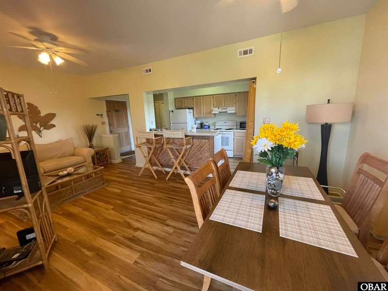 Well-maintained 2nd floor condo close to the beach, restaurants, and shopping. This is an end unit with a covered deck off of the living area and a second covered deck off of the bedroom. Convenient storage unit on ground level. Large pool, gazebo, picnic, and grilling area. HOA fee pays for water, sewer, and trash pickup. 2025 rentals were 3/13 to 6/16, all of July and August and most of September.