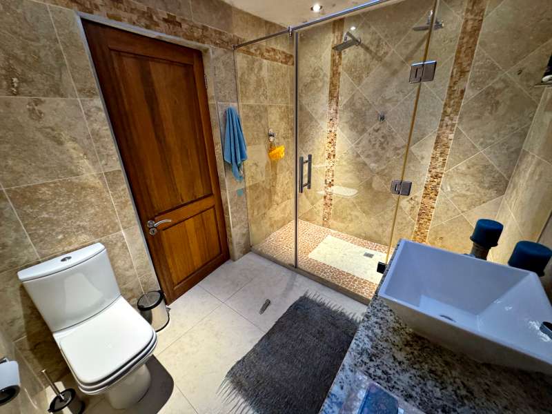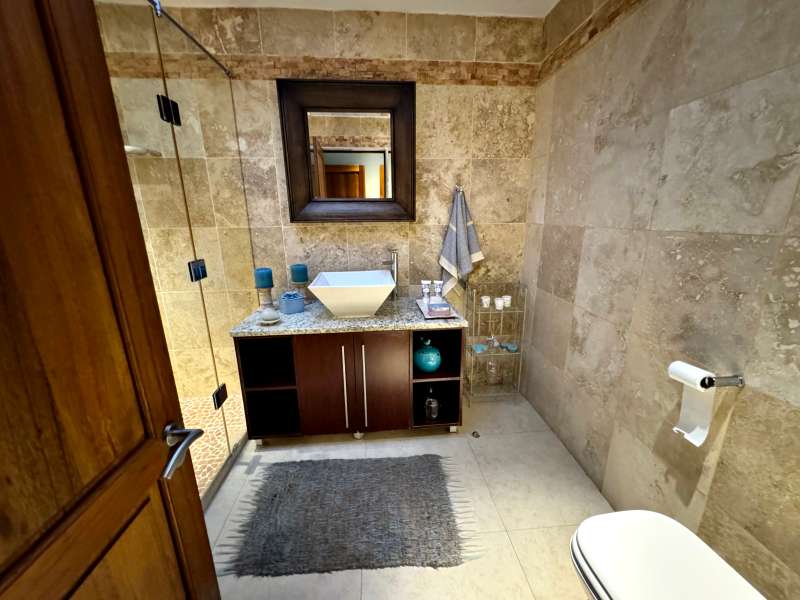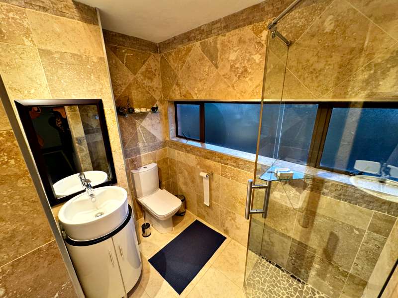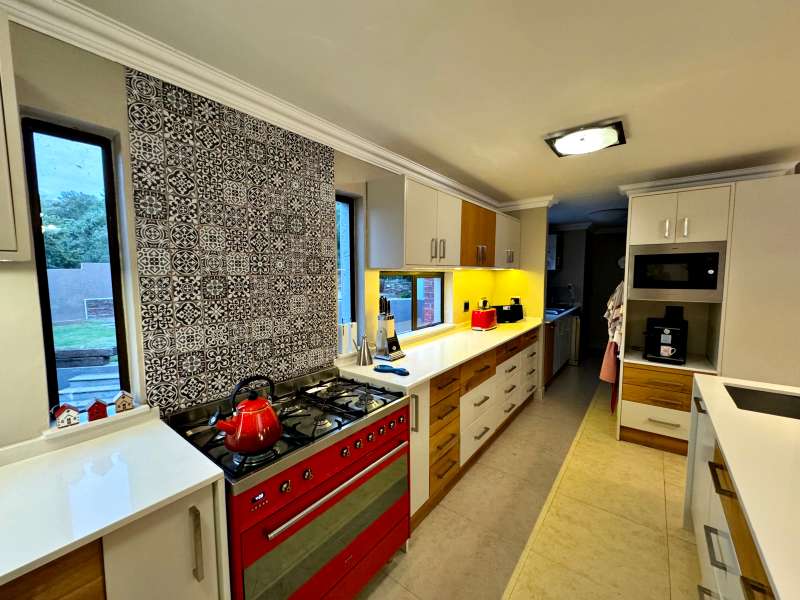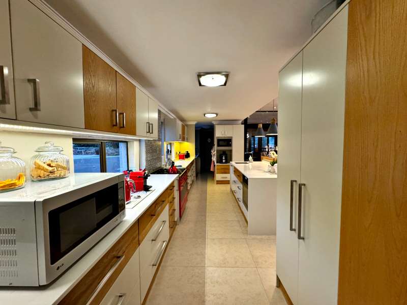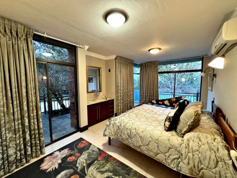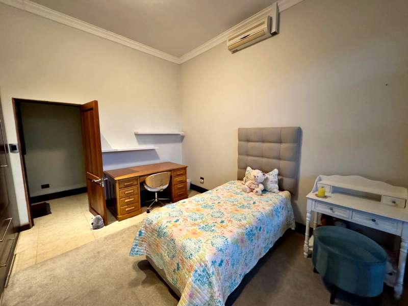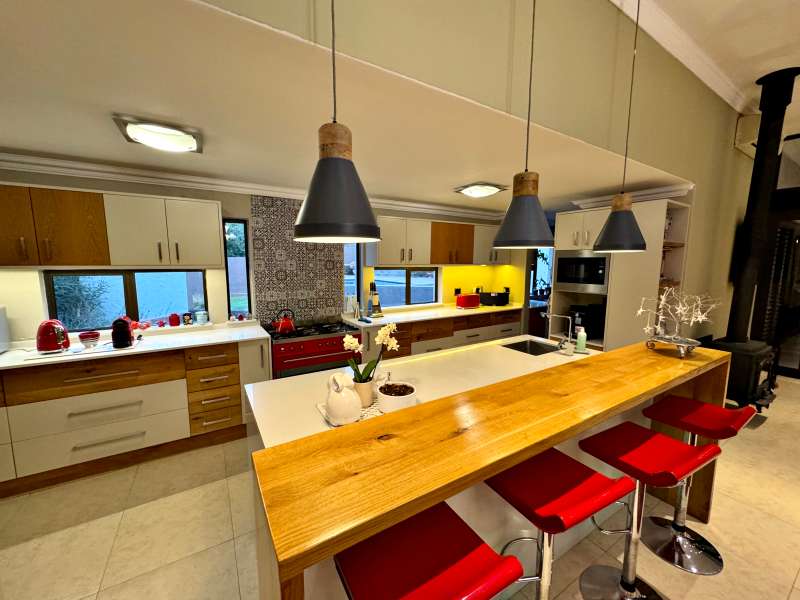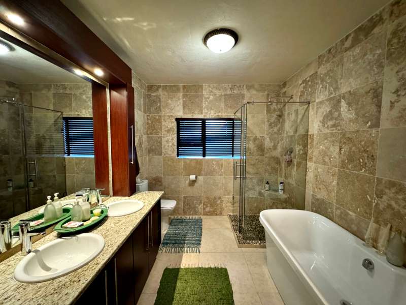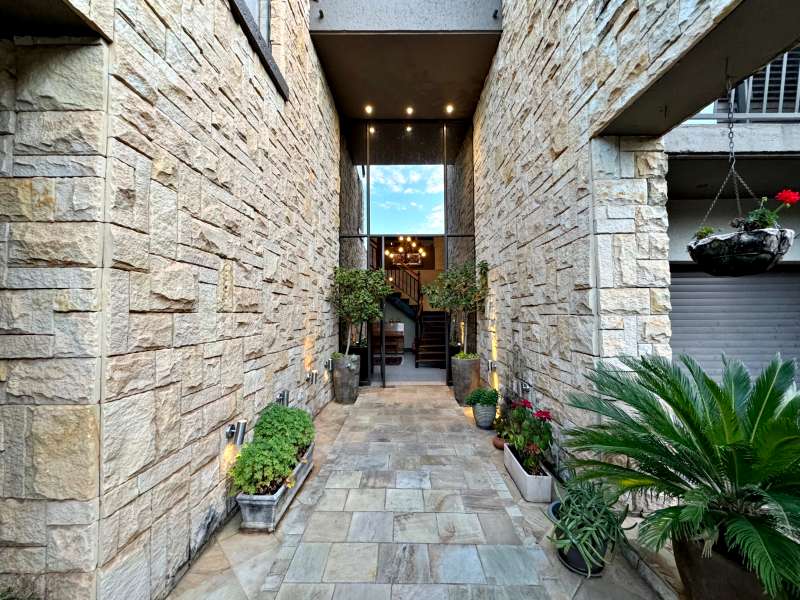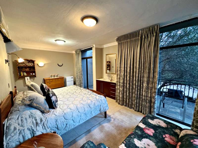Welcome to an exquisite luxury residence nestled within a secure and prestigious estate, offering the epitome of elegance and modern convenience. Step into a grand foyer that sets the tone for this magnificent home, featuring a cosy lounge area and a convenient kitchenette. A spacious guest bedroom with an en-suite bathroom is ideal for visitors or extended family. Ascend to the upper level where you'll find a luxurious formal lounge designed for comfort and style. The open-plan dining and kitchen area is perfect for entertaining guests and the kitchen is fully equipped with modern amenities, including a separate scullery and laundry room. The separate braai room, equipped with a built-in braai and a cosy fireplace, seamlessly connects to the outdoor patio through stack-up doors. The patio, with its louvre roof and built-in braai, overlooks a pristine swimming pool with a Bauma and a lush green area, offering the best of indoor-outdoor living. In addition to the bedroom on the ground level, the property boasts four additional luxurious bedrooms, each a private retreat with its own en-suite bathroom. The dedicated study provides a quiet environment for work or study. Additional features include a kiddies astro court, three garages for ample parking and storage, comfortable domestic quarters and environmentally friendly solar panels enhancing the home's sustainability. This property perfectly blends luxury, comfort and modern amenities, ensuring a lifestyle of unparalleled sophistication in a secure and serene environment.