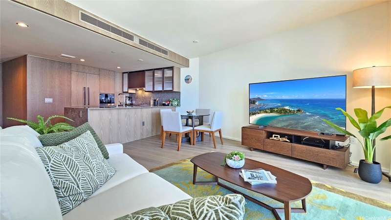 Experience modern island living at Koula, a luxury residence in the vibrant Ward Village community. This 2-bedroom, 2-bath home featuring beautiful views of Diamond head, the marina and the ocean views. The thoughtfully designed kitchen includes Miele appliances, natural stone countertops, and custom cabinetry. Residents enjoy over an acres of resort style amenities, including a lap pool, cabanas, BBQ and outdoor dining pavilions, a fitness center with treatment room, children's play area, a great lawn, dog park, chef's/catering kitchens adjacent to a grand dining room and four guest suites! Perfectly situated next to Victoria Ward Park and just steps from Ala Moana Beach, world class shopping and dinning.
