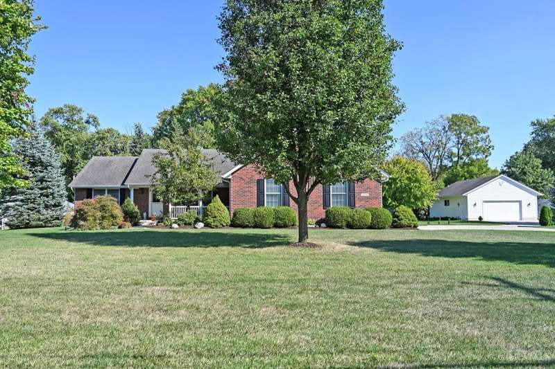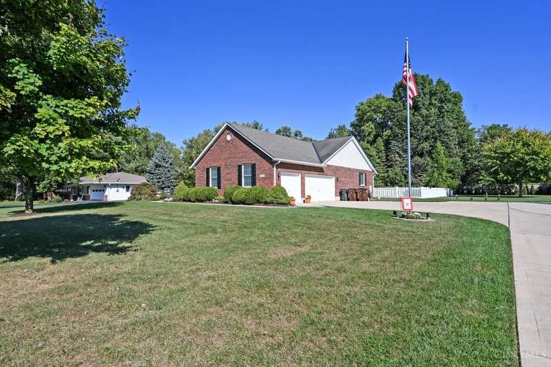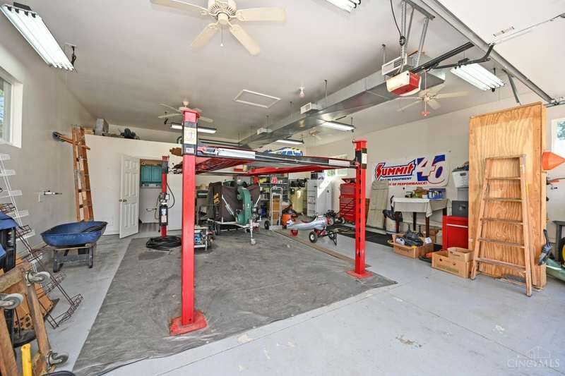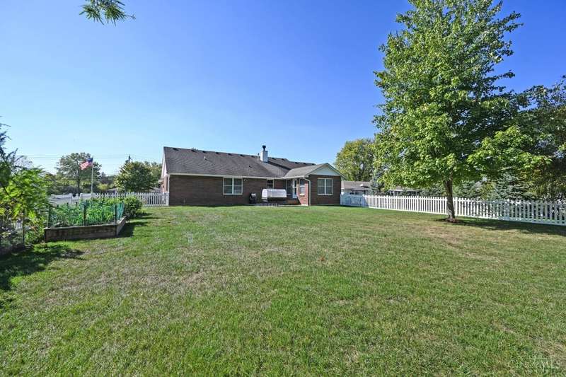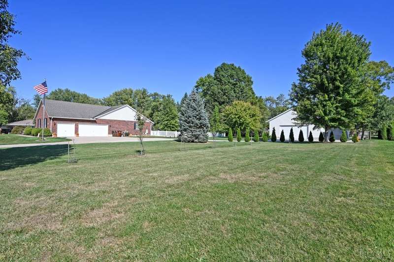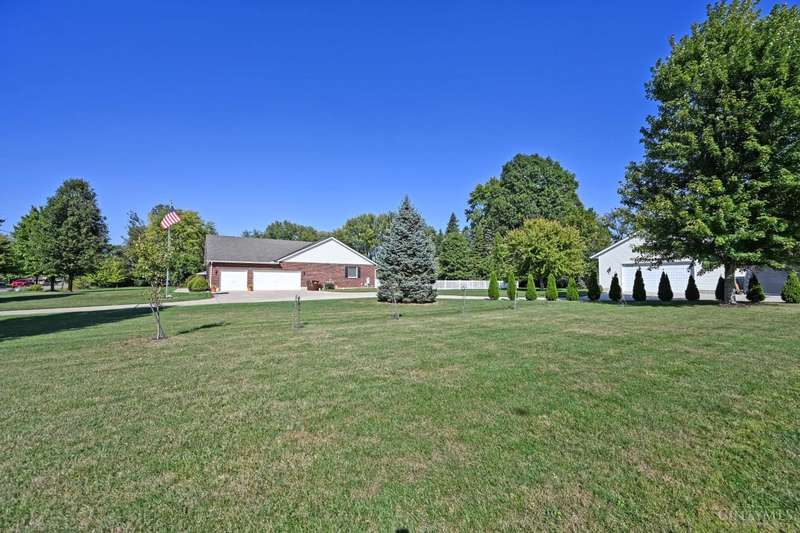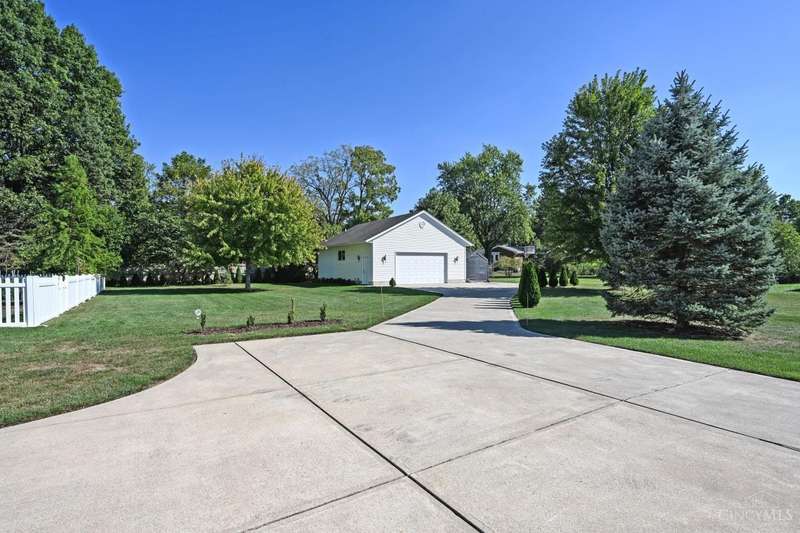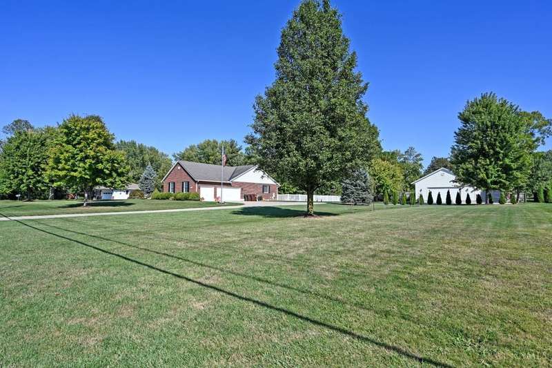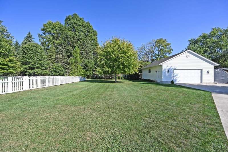 One-of-a-kind property! 3BR ranch on over an acre of land! Open floor plan w/ cathedral ceiling, stunning stone gas FP w/ 65 TV, beautifully remodeled kitchen & baths, study/sunroom, 1st floor laundry, refinished hdwd floors & new carpet. 3-car attached + 4-car detached garage w/ full bath, car lift, HVAC, water, electric & noise-control insulation. White picket fence in bkyd. Lit flagpole, fruit trees & huge concrete driveway. Too many updates to list-please see Feature Sheet!