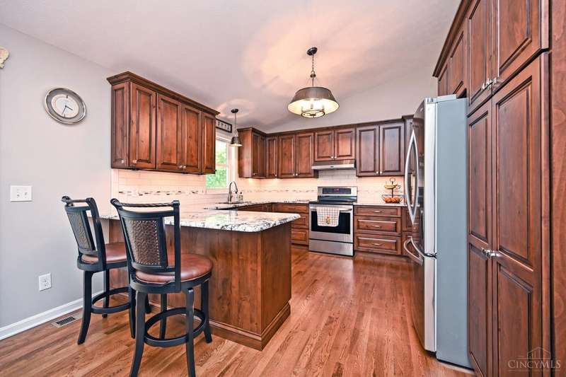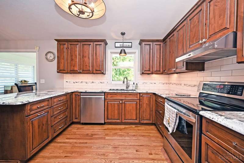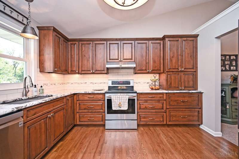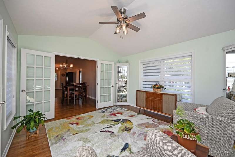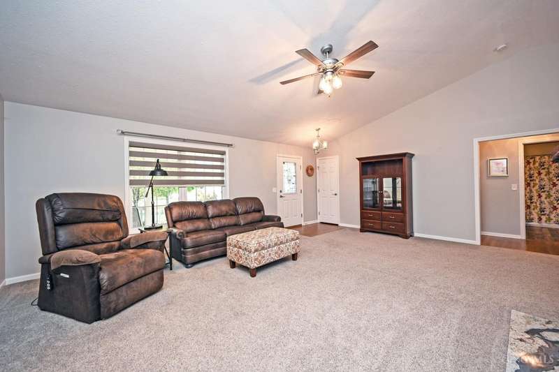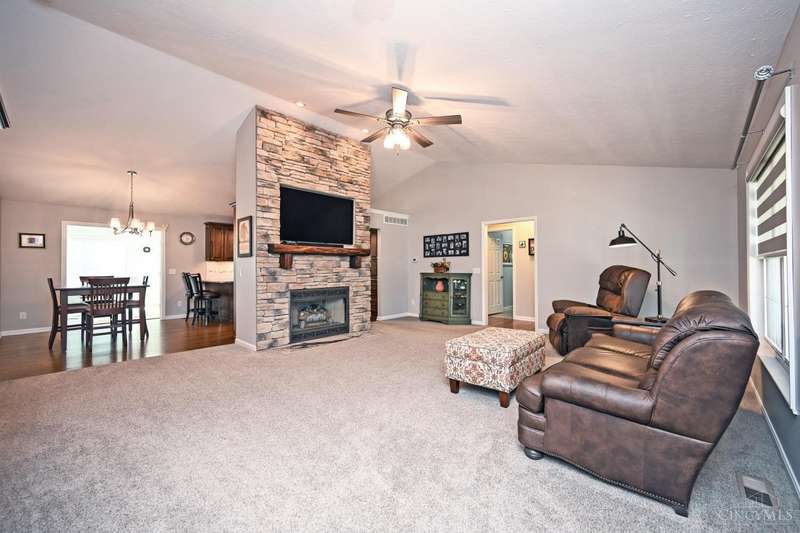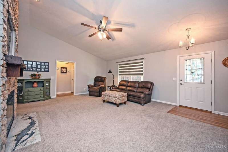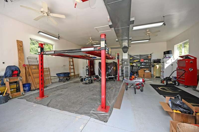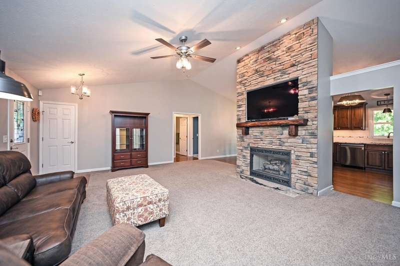 One-of-a-kind property! 3BR ranch on over an acre of land! Open floor plan w/ cathedral ceiling, stunning stone gas FP w/ 65 TV, beautifully remodeled kitchen & baths, study/sunroom, 1st floor laundry, refinished hdwd floors & new carpet. 3-car attached + 4-car detached garage w/ full bath, car lift, HVAC, water, electric & noise-control insulation. White picket fence in bkyd. Lit flagpole, fruit trees & huge concrete driveway. Too many updates to list-please see Feature Sheet!