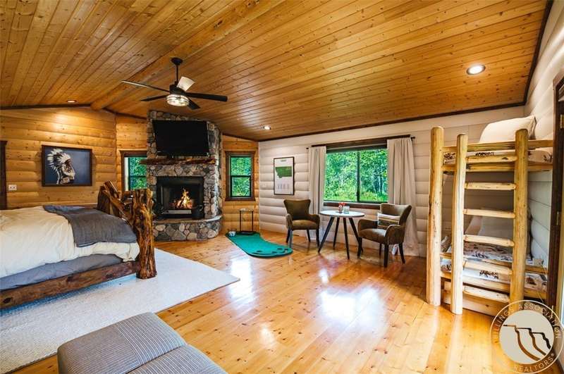 Welcome to Camp Paradise—a truly magical & secluded retreat just moments from downtown Red Lodge. Located on over 13 meticulously landscaped acres, this one-of-a-kind sanctuary features five peaceful ponds, four cascading waterfalls, meandering streams, charming footbridges, & even a private helipad. Three beautifully remodeled cabins exude storybook charm, updated with modern furnishings & artwork. Interior highlights include a breathtaking juniper bar top inlaid with turquoise and custom cabinetry crafted from rare zebra wood imported from Africa. The property also offers a versatile 2-car garage/shop with a bath & bedroom, an art studio or bunkhouse, two garden sheds, & a wooden pier outfitted with canoes & a paddleboat—perfect for relaxing. This is a rare opportunity to own a private paradise that blends luxury, whimsy, and natural beauty. The property offers additional building sites, providing possibilities for expansion or customization. .