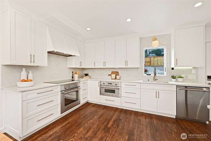 Beautifully remodeled Magnolia home blending 1940s character with modern upgrades. Sunlit living room with oak hardwoods & fireplace. Chef’s kitchen has Thermador induction & designer finishes. Kitchen opens to dining & flows out to new low maintenance backyard - ideal for indoor-outdoor living & entertaining. Main level offers 2 bedrooms & chic full bath. Lower level features a bright family room, 2 bedrooms, 1.5 bths & separate entrance for ADU potential. Extensive updates throughout: New roof, insulation & electrical. New heating/AC, tankless water heater & paint. Remodeled kitchen & baths & refreshed backyard! Rare-2 single car garages! Coveted location - walk to Magnolia Village, top schools, parks & pickleball. Quick downtown commute.