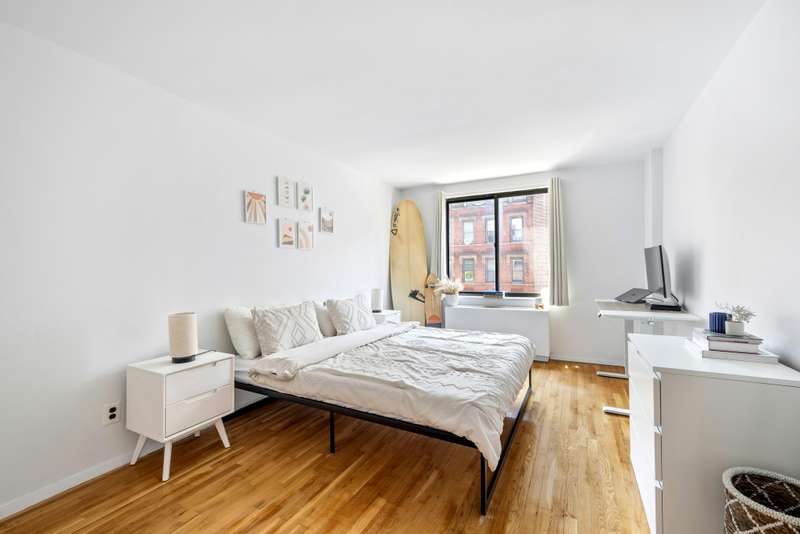 This spacious one bedroom apartment has a sun filled SOUTH exposure in a vibrant and excited neighborhood. The oversized bedroom has ample space for a king size bed, home office, and double closets that extend to the ceiling.