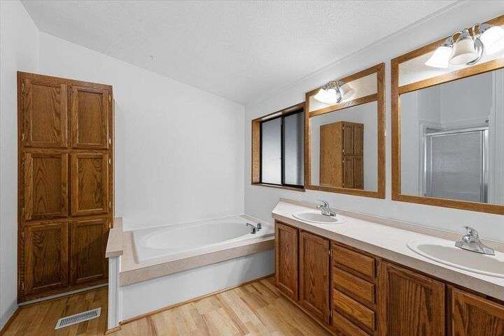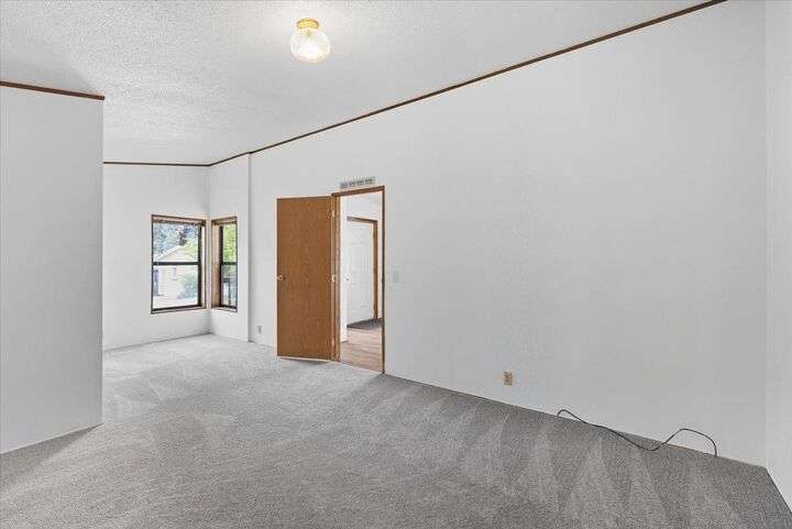 If you are looking for low maintenance living, this is for you! This home is totally refreshed with fresh paint, new carpeting, plank flooring and a beautifully updated bathroom! One level living and a spacious layout with over 1,700 SF. Large walk-in closets in all 3 bedrooms. The primary bedroom offers a full bathroom and double vanity. Oak kitchen and formal dining room and living room. Backs up to one of the many common areas in the neighborhood. Enjoy the 14X20 deck. Large covered breezeway to the finished and insulated one-car garage with opener. A club house to host neighborhood activities and family gatherings. Lots of greenspace with trails, basketball hoop, putt golf and a beautiful setting! BBQ area, RV/boat storage. Peaceful and community oriented with weekly activities. Move in ready, convenient location to Hwy 2, shopping, lakes and recreation.