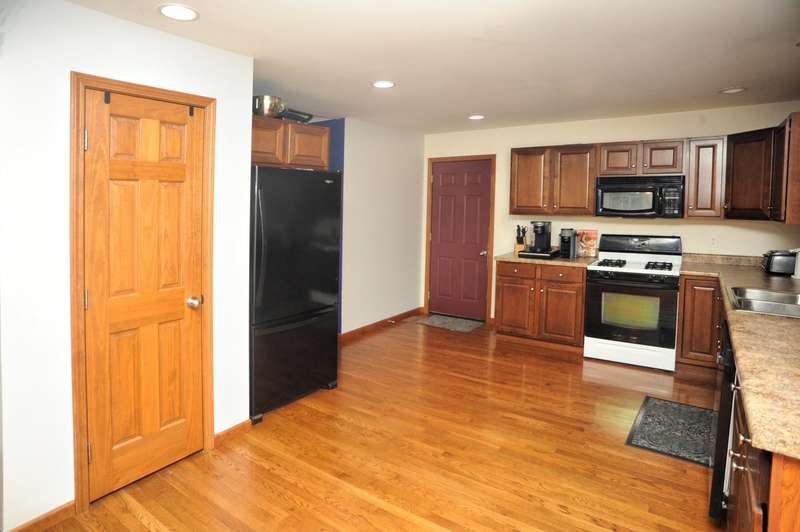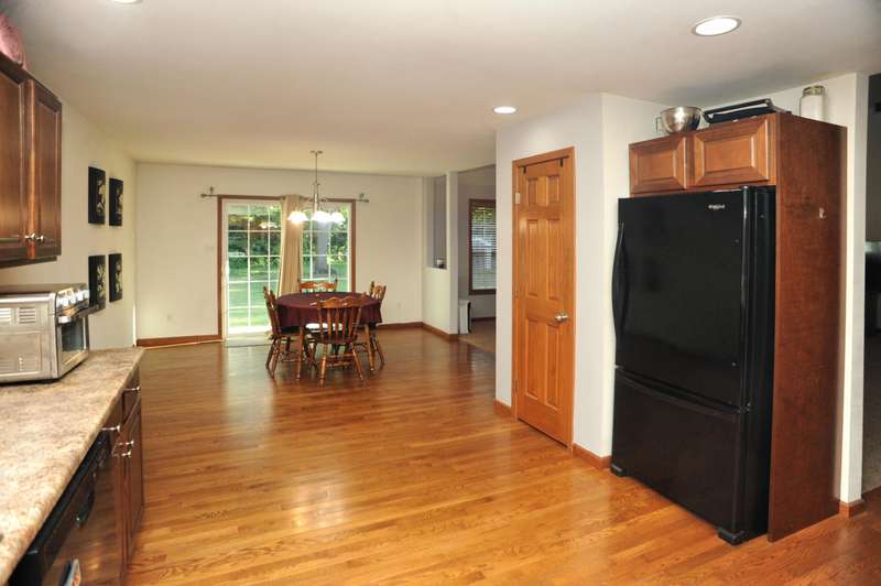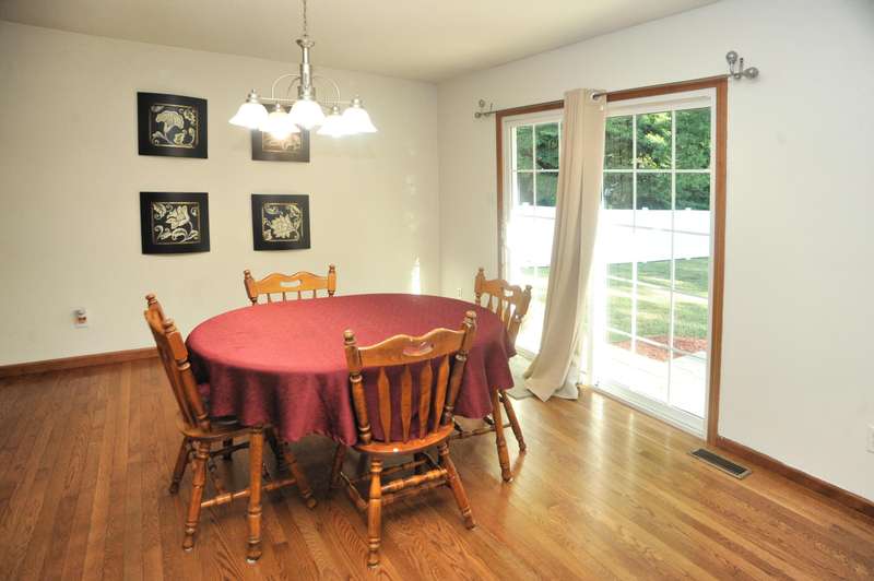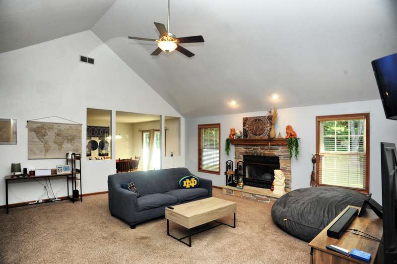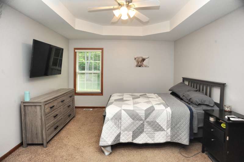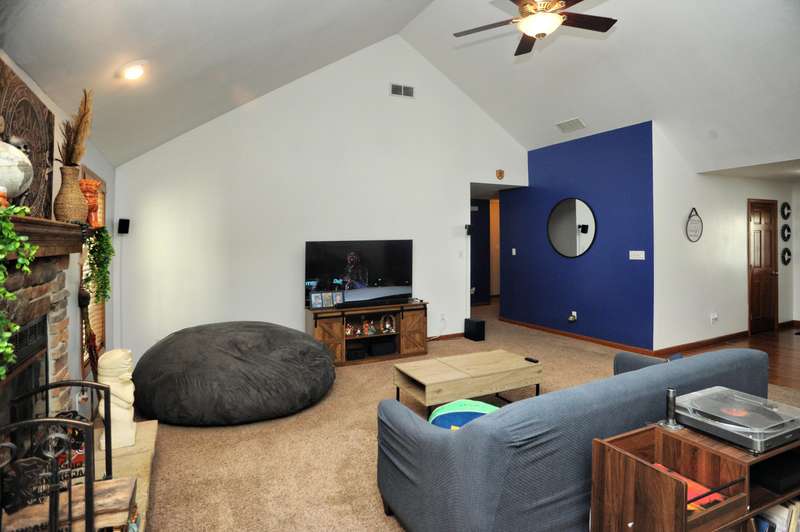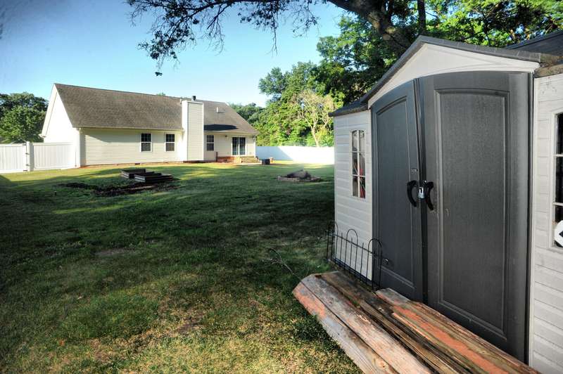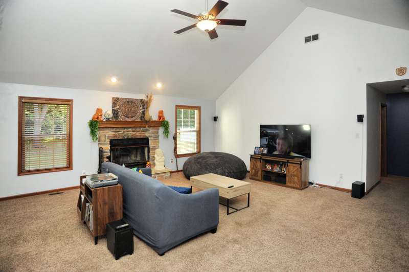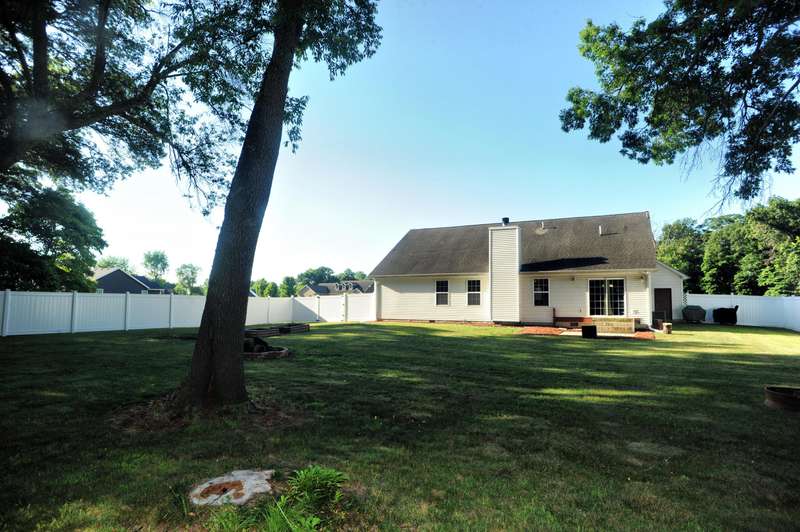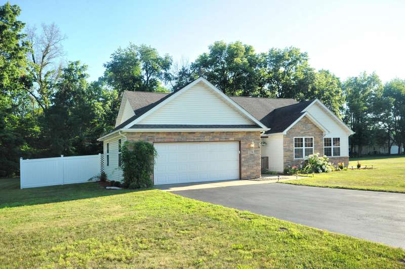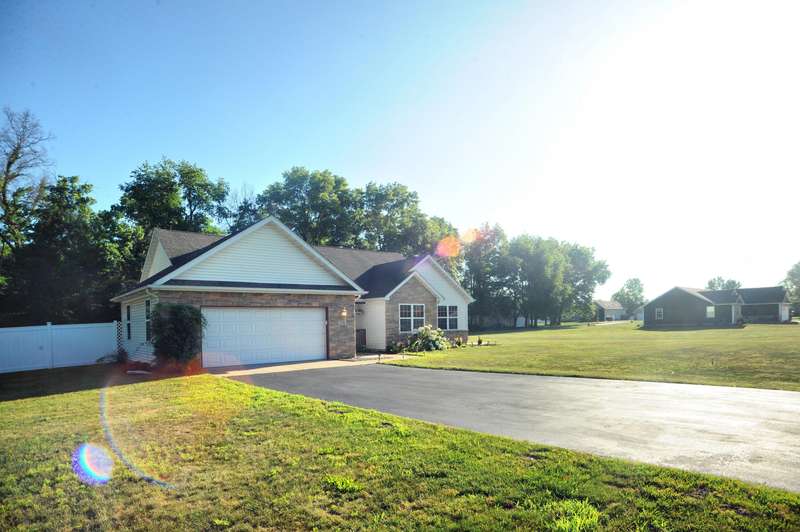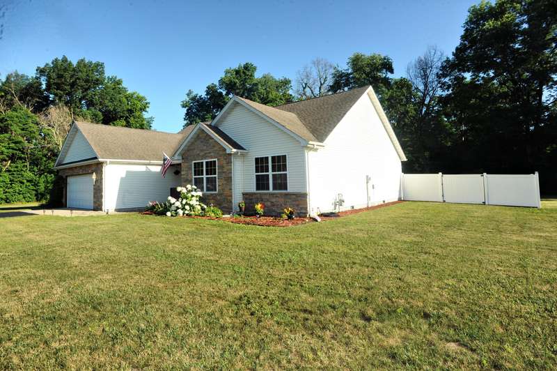Welcome to this beautifully maintained 3-bedroom, 2-bathroom ranch situated on a serene 1.09-acre lot with a private, wooded backyard view. This home offers a warm and inviting interior featuring hardwood floors, cathedral ceilings, and a cozy fireplace. The spacious kitchen includes all appliances, and the main level laundry adds everyday convenience. Enjoy peaceful mornings on the covered front porch or relax on the back patio overlooking the partially fenced yard. The primary suite features a tray ceiling, walk-in closet, and a private ensuite bath. Solid six-panel wood doors and ceiling fans throughout add both quality and comfort. A 2.5-car attached garage and storage shed provide ample space for tools and toys. Don't miss this quiet retreat that offers both privacy and practicality.