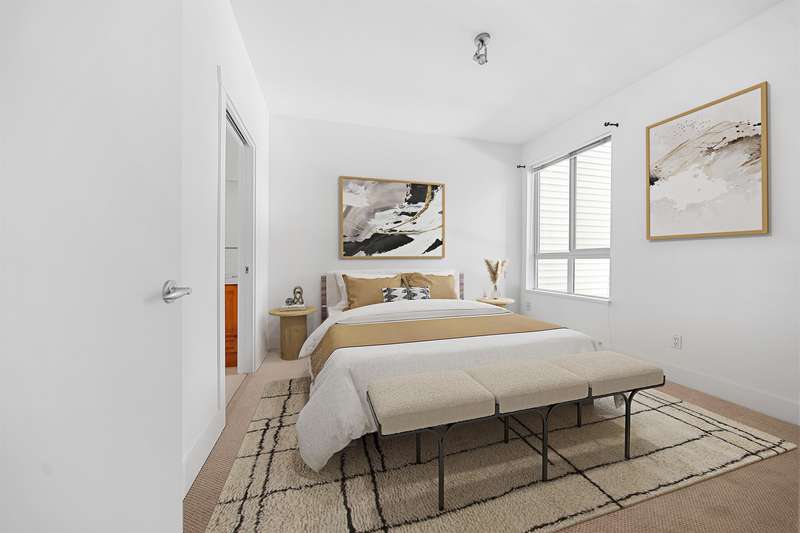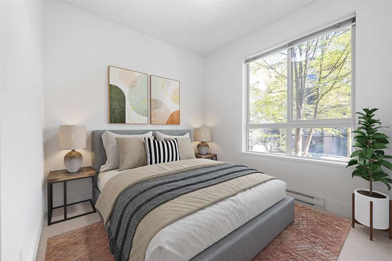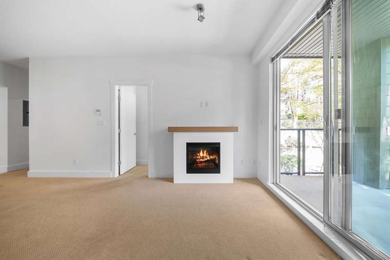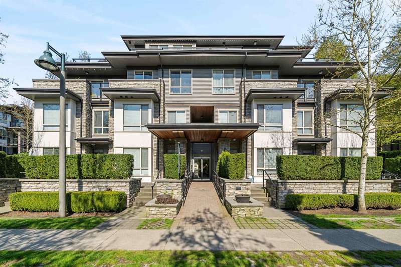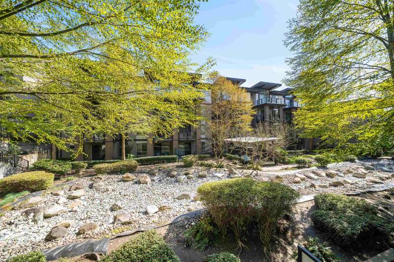 Welcome to the award-winning GREEN by Adera, an eco-conscious development nestled in beautiful Byrne Creek Ravine Park. This freshly painted 2 bed/2 bath home offers 790 sq ft of open-concept living with a balcony facing the lush garden and tranquil water features. The kitchen boasts granite countertops, stainless steel appliances, and ample cabinetry. Cozy up by the electric fireplace in the spacious living area. Includes 1 secured parking stall & 1 storage locker. Pet & rental friendly. EV charging, visitor parking, and resort-style amenities: gym, sauna, yoga studio, party lounge, BBQ area & more. Walk to SkyTrain, Taylor Park Elementary, Market Crossing, Highgate, trails & golf.