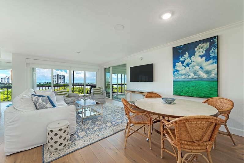 This stylishly renovated residence showcases breathtaking, panoramic GULF and BAY views, designed to maximize natural light and coastal living. Offering 2 Bedrooms + FLEX space and 2 Baths, the open floor plan features French oak flooring throughout the main living areas and a split-bedroom layout that ensures privacy for guests. St. Tropez welcomes you with its coastal-chic lobby and resort-style amenities, including two guest suites, a large pool with outdoor kitchen, social room, fitness room, and the benefit of a dedicated on-site property manager. Ideally located next to the Pelican Bay tram, you'll enjoy quick and effortless access to the BEACH. As a Pelican Bay resident, you'll experience unrivaled amenities: two beachfront restaurants/bars with attended service, a state-of-the-art fitness center, 18 Har-Tru tennis courts, kayaking, biking, a learning center, and miles of scenic nature paths. Artis-Naples, Waterside Shops, and Mercato are just minutes away!