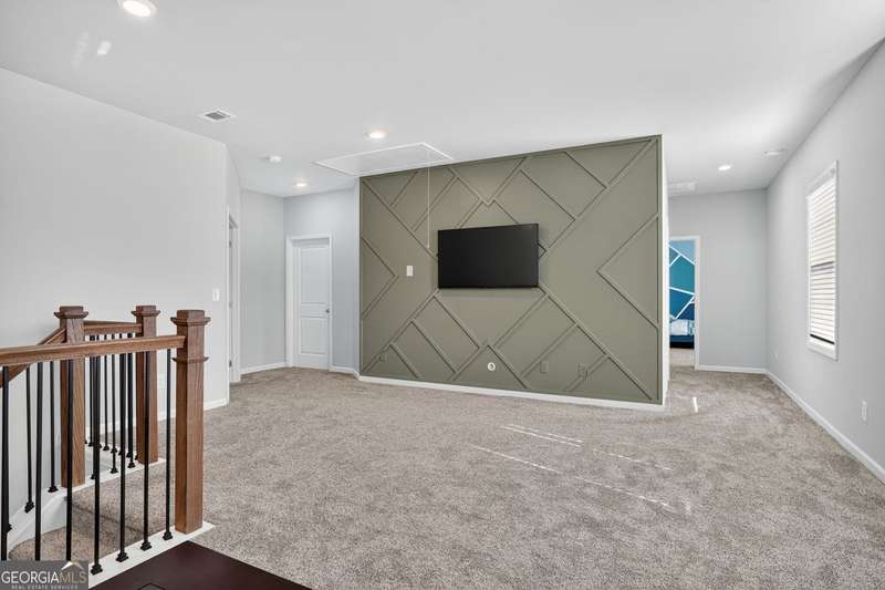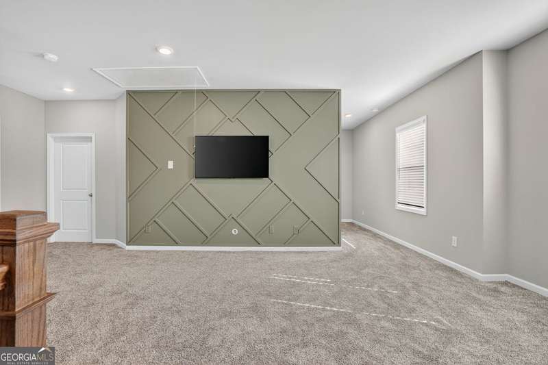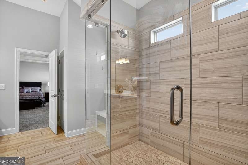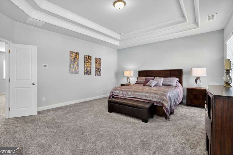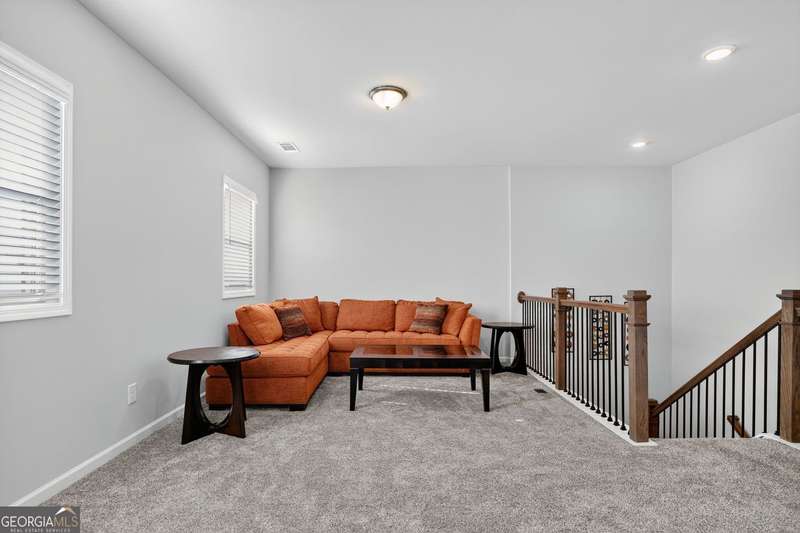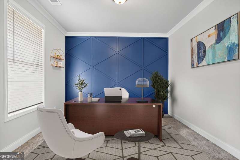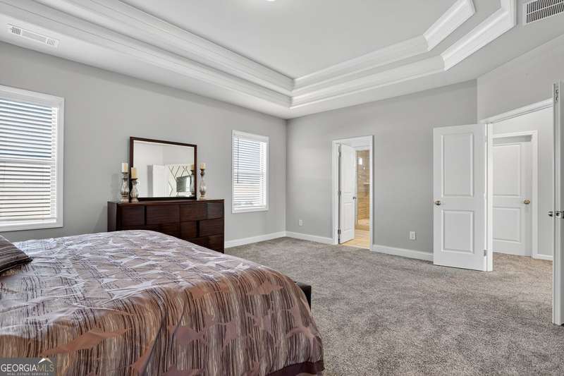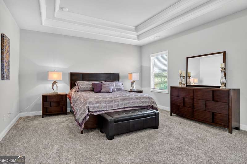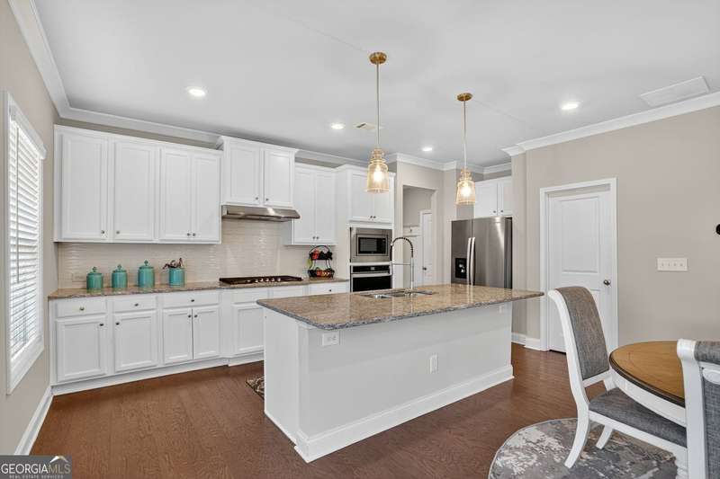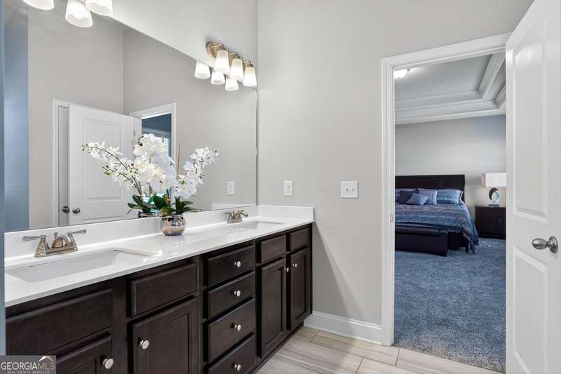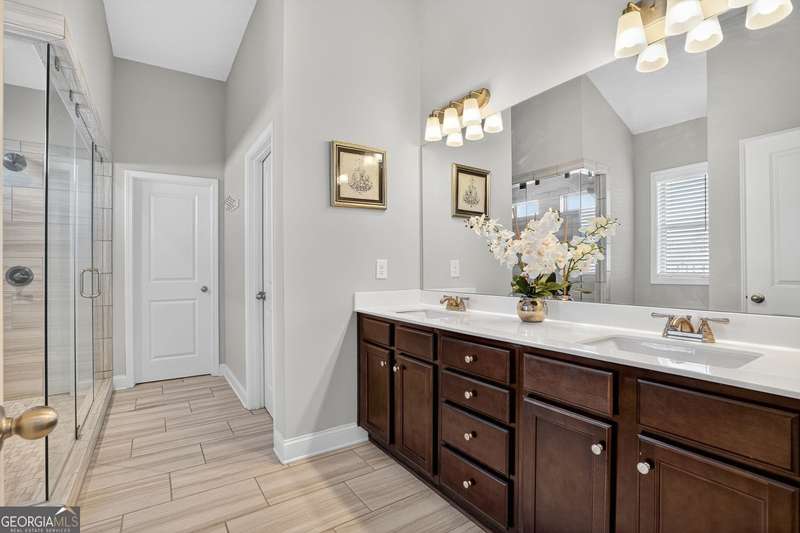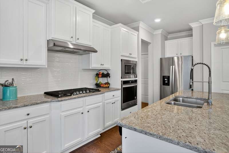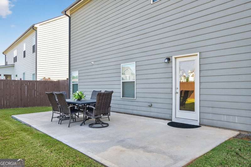 This gorgeous move in ready and like new home for sale in Flowery Branch welcomes you with warmth and character! Facing East, you'll enjoy the abundance of natural light flowing through this impeccable home. Step inside to an elegant entrance foyer with a formal living and dining room adjacent. The versatile living room is highlighted by a custom accent wall with detailed millwork and designer paint, making it a perfect space for a home office or study. A glamorous formal dining room with wainscotting is ready for your next dinner party. Hardwood floors flow effortlessly from the foyer into the kitchen and family room, where classic coffered ceilings and a warm fireplace set a welcoming tone. The family room opens to a chef's kitchen, featuring a large center island with granite countertops and chic white cabinets that complement the elegant millwork throughout. A guest bedroom and a full bath complete the convenient main level. Step outside to the oversized patio and a well-manicured, level, fenced backyard; an ideal spot for enjoying a cup of tea in the morning or watching the sunset in the evening. Upstairs, a spacious open loft provides the perfect space for a media room, workspace, or play area. Retreat to the very comfortable master suite, which boasts elegant trey ceilings and a luxurious spa-like bath with an oversized shower and built-in shelving. The roomy master closet offers plenty of space. Two additional bedrooms and a full bath complete the upper level. Located in Lancaster, a lively neighborhood with a community pool, this home offers easy access to shopping, dining, and I-985. You're also just minutes from popular area attractions, including the Mall of Georgia, Chateau Elan, and Lake Lanier Islands. Don't miss the chance to own this lovely home in a great location and neighborhood!