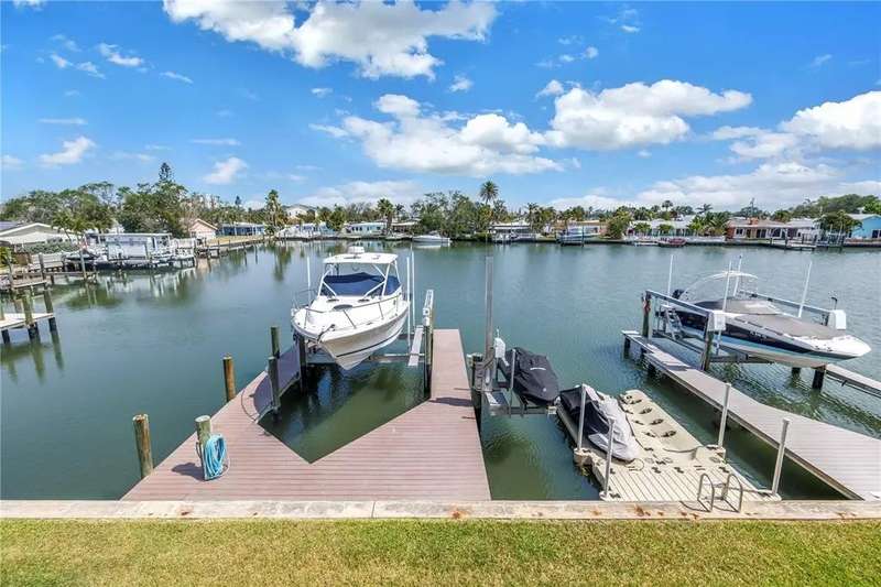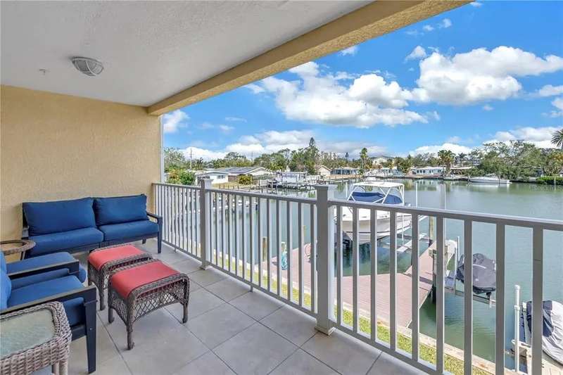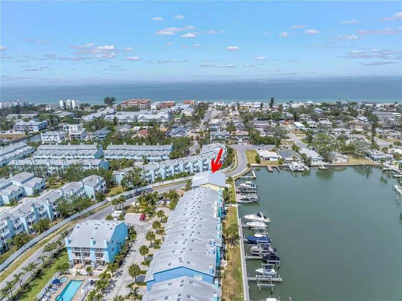Live the Florida coastal dream lifestyle in this 3-bedroom, 2.5-bath elevated townhome built in 2017, complete with a private 35' boat slip and direct canal access to the Intracoastal Waterway—just minutes from the Gulf. Whether you're a boater, beachgoer, or both, you'll love the prime location just a five-minute walk to the beach and close to local dining, shopping, and entertainment. Built solid with all-block construction, this three-story home offers a spacious floor plan with engineered hardwood flooring throughout the main living areas, a private elevator, and water views from both the balcony and covered patio. The kitchen features granite countertops, wood cabinetry, stainless steel appliances, and a breakfast bar that opens to the living and dining areas. Upstairs, the primary suite includes water views, a sitting area/office nook, walk-in closet, and a large en-suite bath with dual sinks and a walk-in shower. The oversized 40’ deep tandem garage provides parking for two cars and plenty of extra storage for your beach gear and toys. After a day on the water, take a short stroll to the beach for sunset or hop on the nearby Jolly Trolley for a night out. This is low-maintenance waterfront living at its finest in one of Indian Rocks Beach’s most desirable locations.