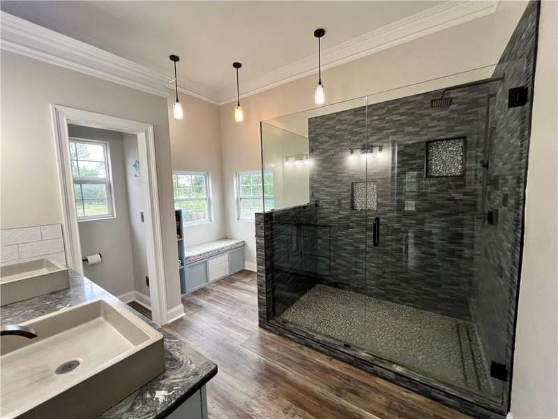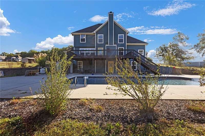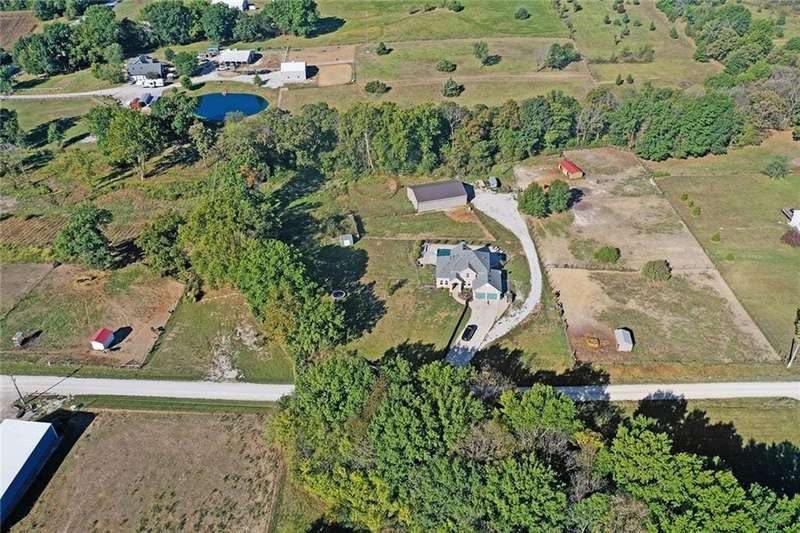 AMAZING custom built home on BEAUTIFUL 10 acres has sooo much to offer. Newly remodeled kitchen with tons of granite countertops, a breakfast bar, loads of custom cabinets (some pull outs & a lazy susan), 3 pantries, newer high-end appliances & more. Breathtaking custom built wood staircase made out of the wood cut from trees on the property. You will love the huge walk-in tiled shower with multiple jets in the newly updated master suite. Newer Life Proof luxury vinyl flooring throughout the main level and upstairs. Bedroom 3 has a large closet & additional attic space was finished for a play room or even more closet space! Lots of newer paint throughout. Finished walk-out basement with brand new nicely finished full bath. 7th BR down does not have an egress window. New roof in 2019. Outside paint in 2021. Oversized garage. Gorgeous 40x20 inground salt water pool with extensive concrete perfect for entertaining. New pool pump in 2024 and new sand filter in 2023. 40x60 Barn built in 2022 with electric, horse stalls, automatic waterers, tack/feed room & more perfect for the horse lovers. Shed & additional outbuildings. Newer fencing to the right of the home. New lagoon dug & new septic in 2022. 1/4 of an acre stocked pond. Only 700 feet of gravel road to the home!