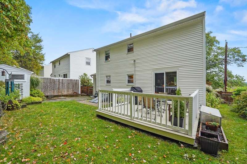 Set on a quiet street, this beautifully maintained mid-century Colonial blends classic charm with thoughtful updates—ideal for modern family living. The main level features a sun-filled living room with sliders to the deck and fenced yard. The updated kitchen opens to the dining room, with hardwood floors throughout. A side-entry mudroom keeps daily life organized. Upstairs, the spacious primary bedroom spans front to back, joined by two additional bedrooms and a full bath. The finished lower level offers flexible space for a family room, office, or guest suite, with a full bathroom and storage. Outside, perennial gardens, patio, and deck create a three-season retreat. Vinyl siding, off-street parking, and a shed add low-maintenance appeal. Just a mile to Hyde Park and Fairmount commuter rail, with bus service to Forest Hills and Roslindale Square. Recent updates include renovated kitchen and baths, gas heating, central air, and insulation—modern comfort in a hidden gem neighborhood.