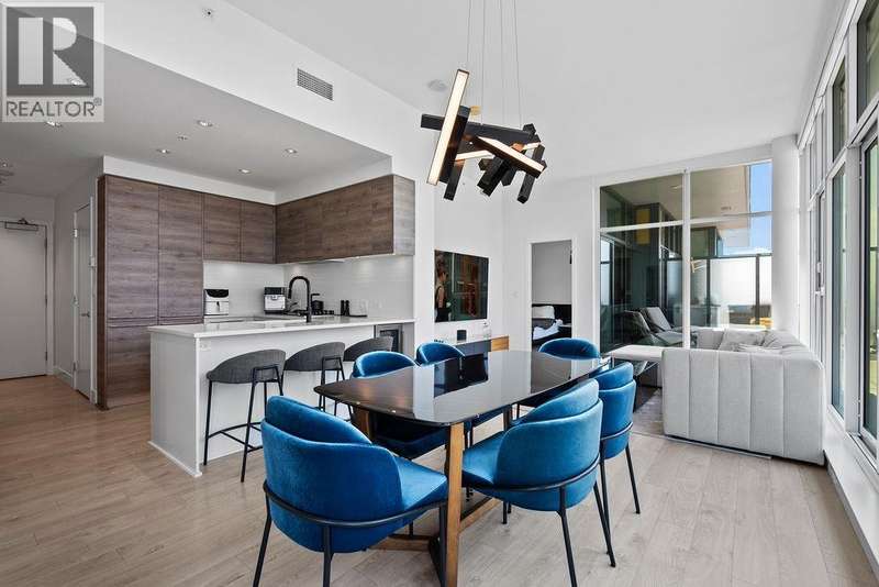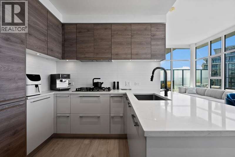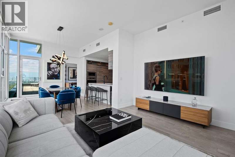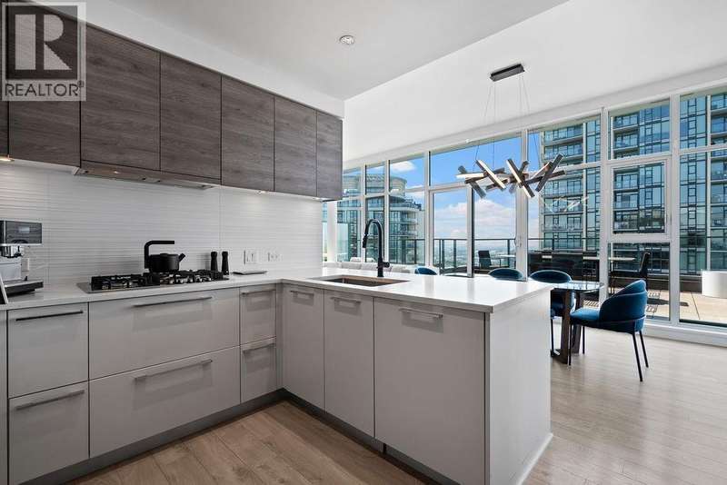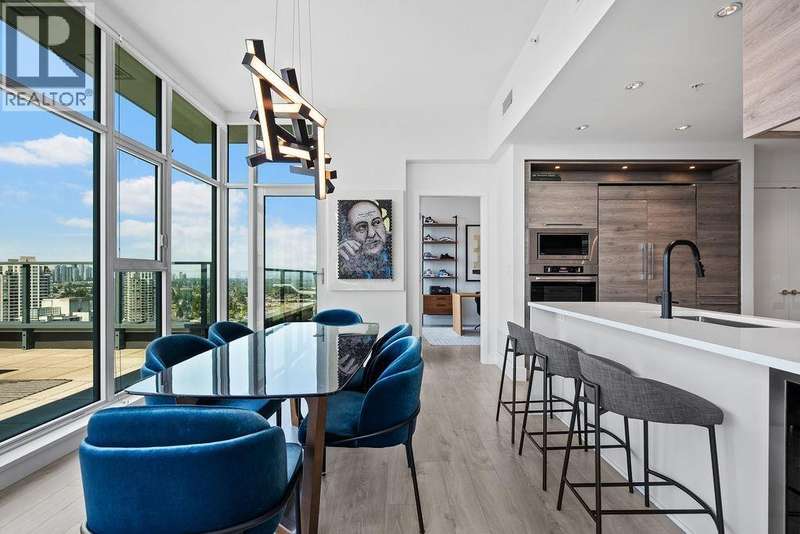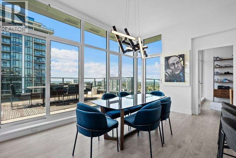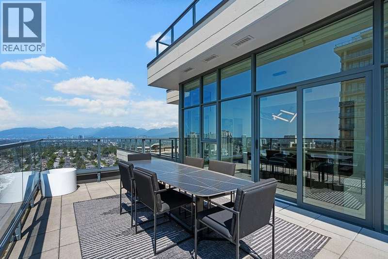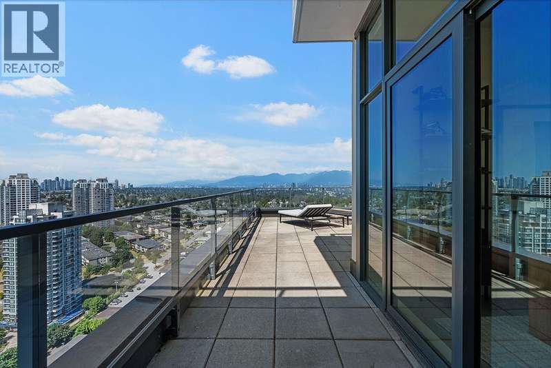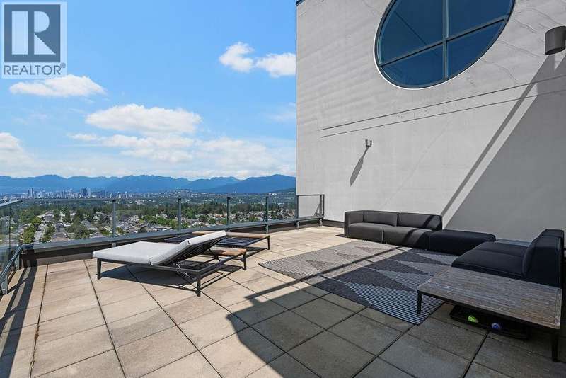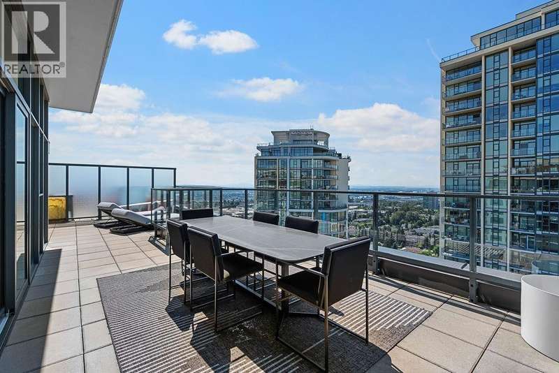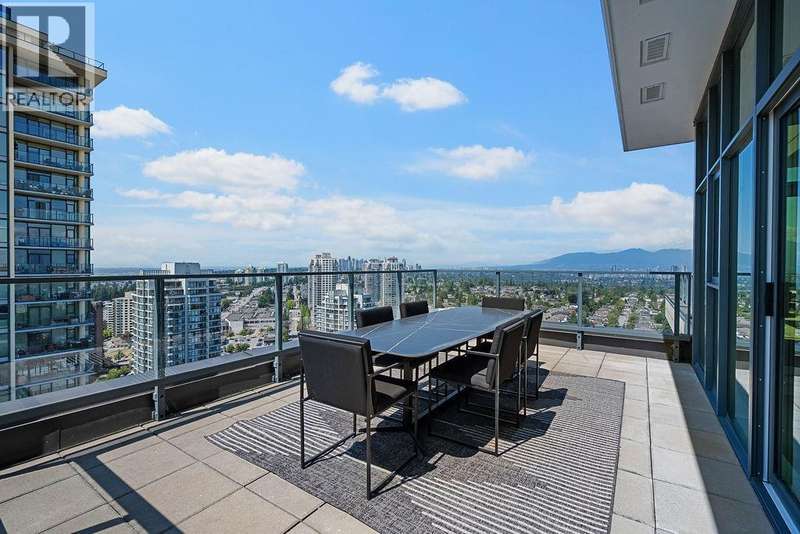 Penthouse Living with panoramic Views! This stunning 2 bed, 3 bath corner unit soars above the city with over 1200 sqft of private outdoor space and panoramic 270° views of the mountains, ocean, and skyline. Thoughtfully designed layout with two large bedrooms on opposite sides, each with its own ensuite bathroom, plus a stylish powder room for guests. The Cressey-built home features a chef´s kitchen with gas stove, heat pump with air conditioning, and over 1060 sqft of bright interior living. Premium amenities include basketball & squash courts, sauna, steam room, party room, two floors of gym facilities, & concierge. Includes 2 parking & storage. A rare opportunity to own one of Burnaby´s most impressive penthouse residences. (id:58403)