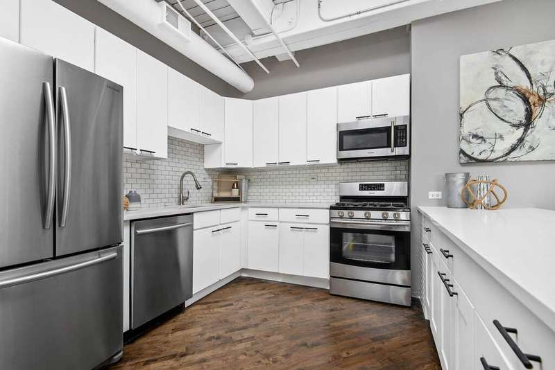 Gorgeous recently renovated 3 bed 2 bath timber loft condo in a former warehouse converted to jaw dropping condos. Amazing walk to it all location in the West Loop! This south facing sunny condo has an open concept split level floor plan, an extra wide 30 foot interior, white timber loft ceilings, exposed painted brick & 11 foot ceilings making it an airy retreat in the city. Huge dining area fits a table for 10-12 w/ large living area & big renovated kitchen w/ island; perfect for entertaining. All 3 bedrooms are fully enclosed & huge; easily fitting queen/king beds; 2 have large walk in closets. Master suite fits king bed, has a huge walk in closet & spa like bath w/dual sinks & walk in shower. Formal entryway w/coat closet. Walk to Loop, UIC, Greektown, Soho House, parks, shopping, Randolph St. restaurants, Whole Foods, Blue El, & more. In-unit W/D. Elevator bldg. Property is available starting October 1, 2025.