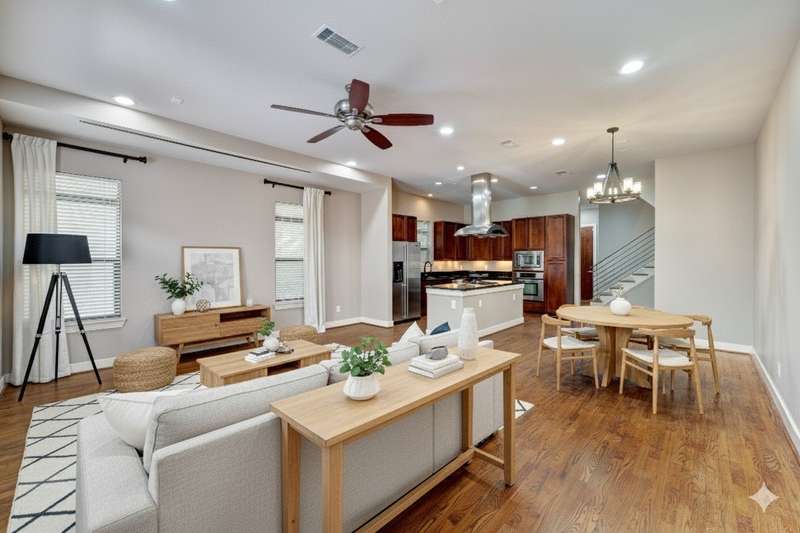 This charming 3 bed, 2.5 bath home offers 2,024 sqft (per HCAD) of thoughtfully designed living space. Beautiful hardwood floors flow throughout the entire home, creating warmth and elegance without the hassle of carpet maintenance. Fresh interior paint provides a clean, move-in-ready feel that welcomes your personal touches. The heart of the home features an island kitchen perfect for entertaining guests. All appliances are included! The first floor living area creates an ideal flow for daily life. Step outside to discover an extended patio enhanced with artificial turf, offering low-maintenance outdoor living that stays green year-round. Near Memorial Park for easy access to trails and recreation! The ideal location provides short commutes to downtown or Galleria. This home combines practical features with comfortable living spaces, creating the perfect balance for modern life.
