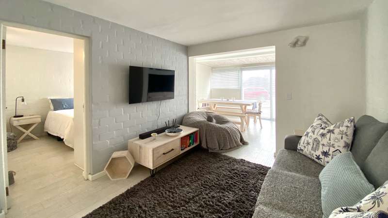 Modern Beachside Apartment in Dwarskersbos This 2-bedroom ground-floor apartment is a short stroll from the beach in the charming coastal village of Dwarskersbos, just 13 kilometers north of Velddrif. Inside, you'll find an open-plan living area that flows seamlessly from the braai room into the lounge, kitchen, and dining space. The kitchen is well-equipped with plenty of storage, a gas hob, and an electric oven. The main bedroom features an en-suite bathroom with a bath, basin, and toilet, along with built-in cupboards. The second bedroom also includes built-in cupboards. A separate family bathroom with a shower, toilet, and basin is also available. Dwarskersbos offers a peaceful, relaxed lifestyle, perfect for a permanent move or a holiday retreat. Enjoy the beautiful white sandy beach, which is ideal for swimming, fishing, kayaking, or simply taking a long walk. Contact us to schedule a viewing.