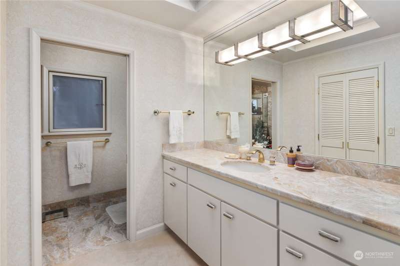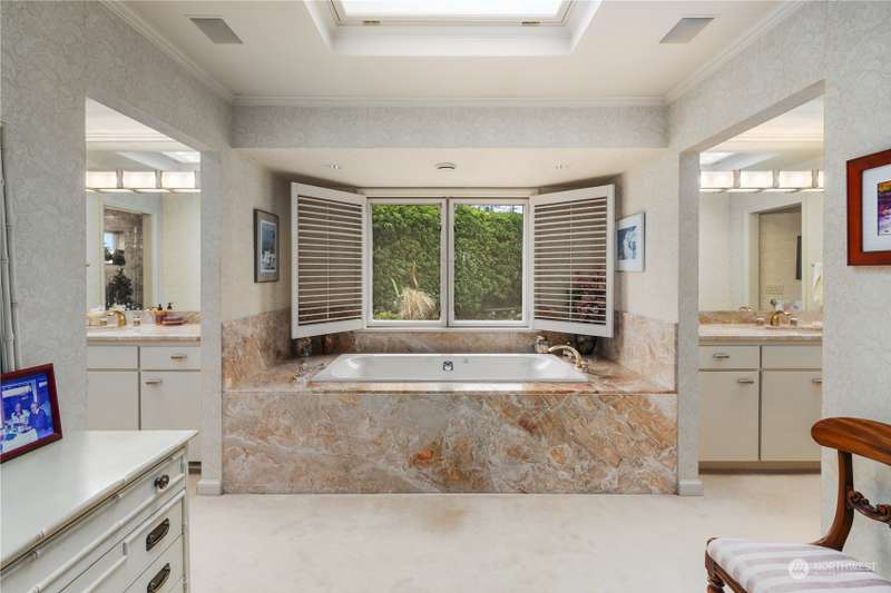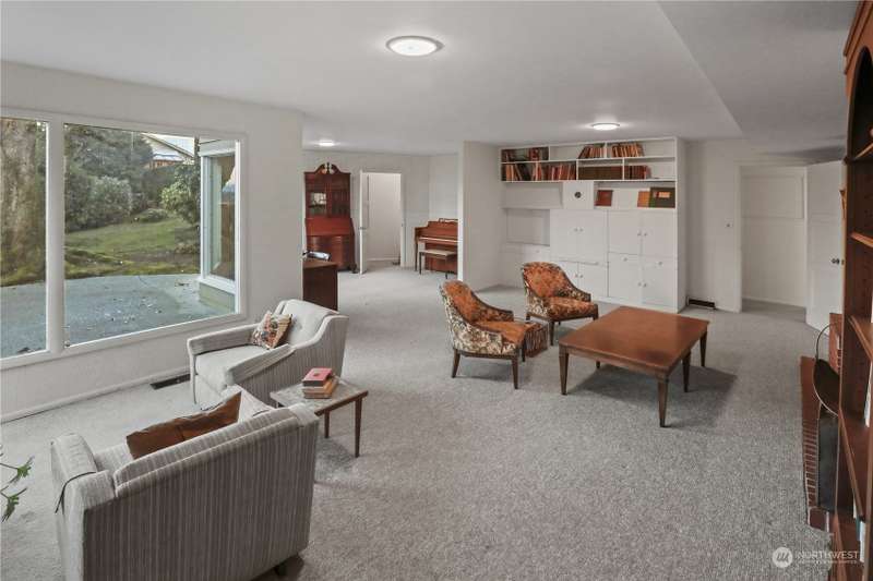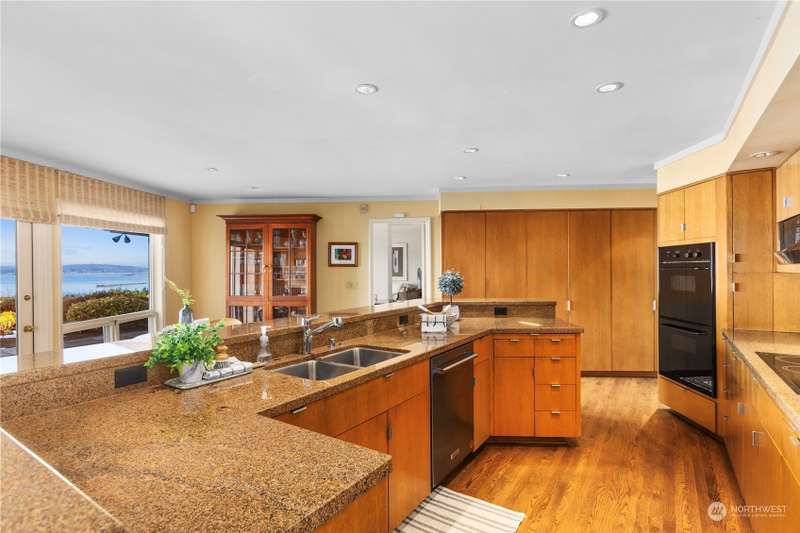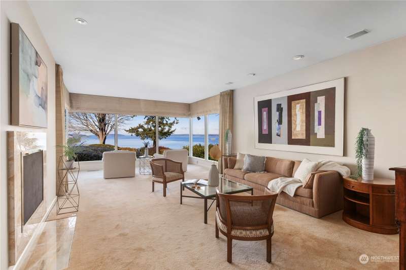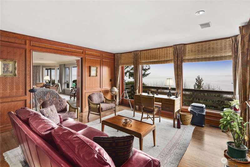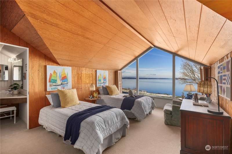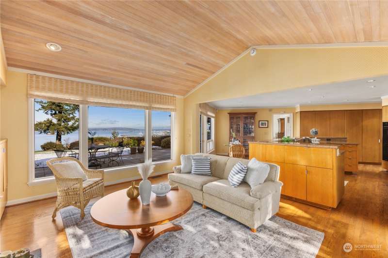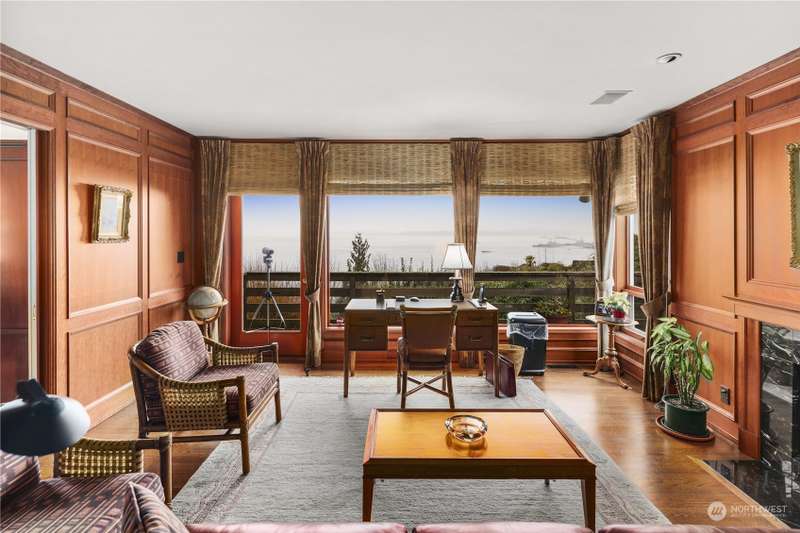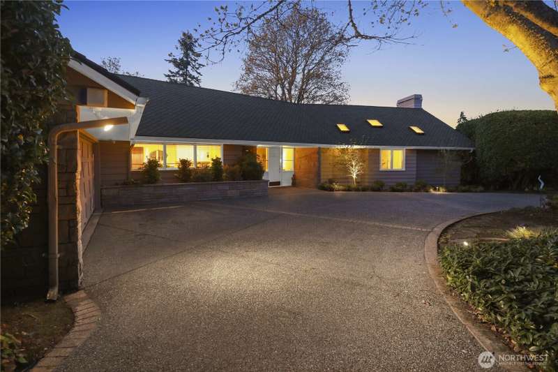 Rare opportunity on View Ridge’s coveted North Park Drive. Experience rambler-style living on a stunning acre of bluff property that features endless views of Puget Sound from nearly every window of this home. The main floor offers approximately 2,400 square feet of living space, including a one-of-a-kind primary bedroom with dual bathrooms and an adjoining den. This level also features a spacious kitchen, family room, formal living and dining rooms, and a two-car attached garage. Upstairs, you’ll find guest quarters complete with a bedroom, bathroom, and the home’s best view. The daylight basement has a versatile rec room, bedroom, bathroom, and large storage room. The private patio is a great spot to unwind and watch the sunset.