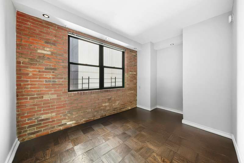 The oversized primary bedroom provides ample space for a king bed, dressers, nightstands, home office and exceptional storage. ; The second bedroom features a distinctive brick-paneled accent wall with warm west-facing light.