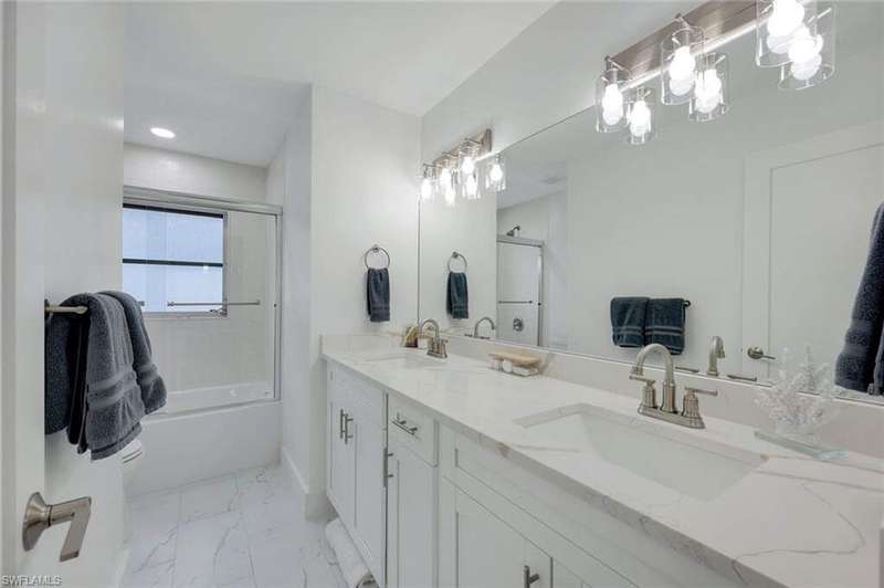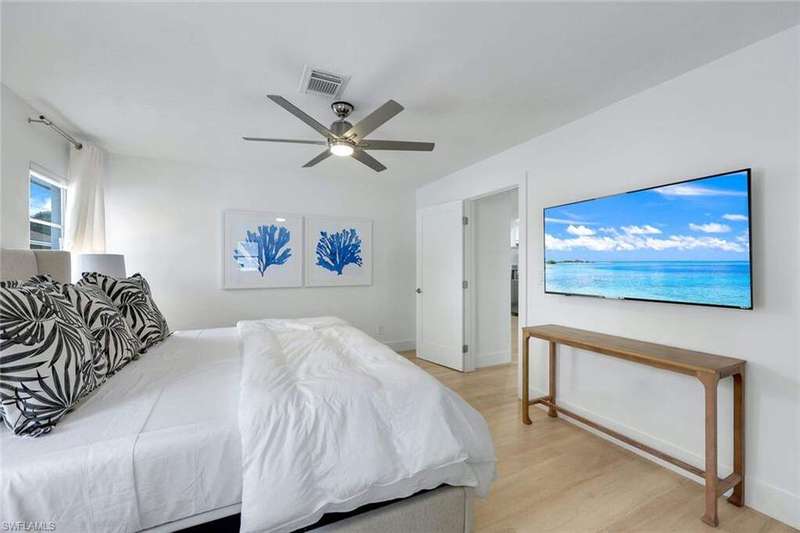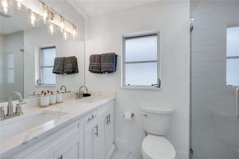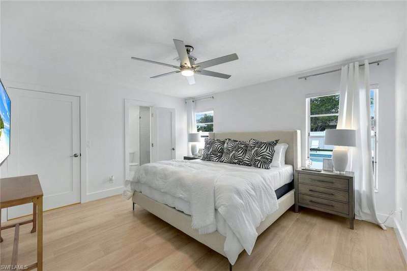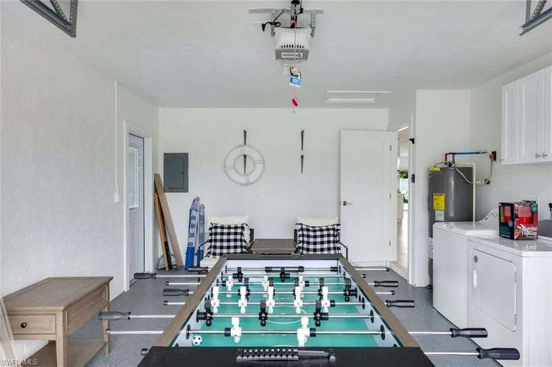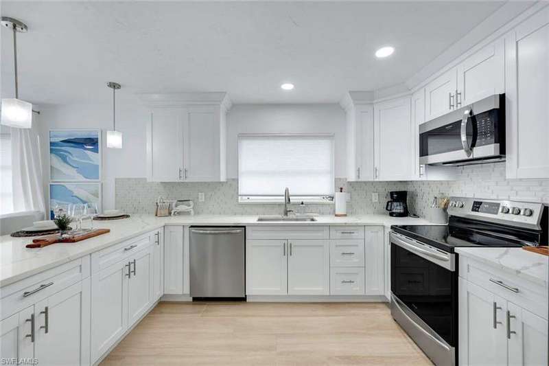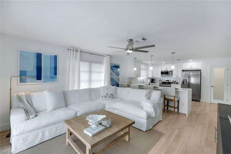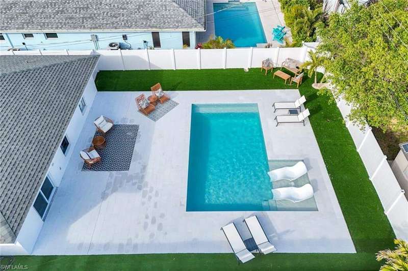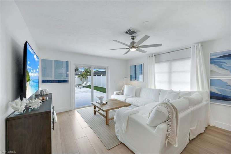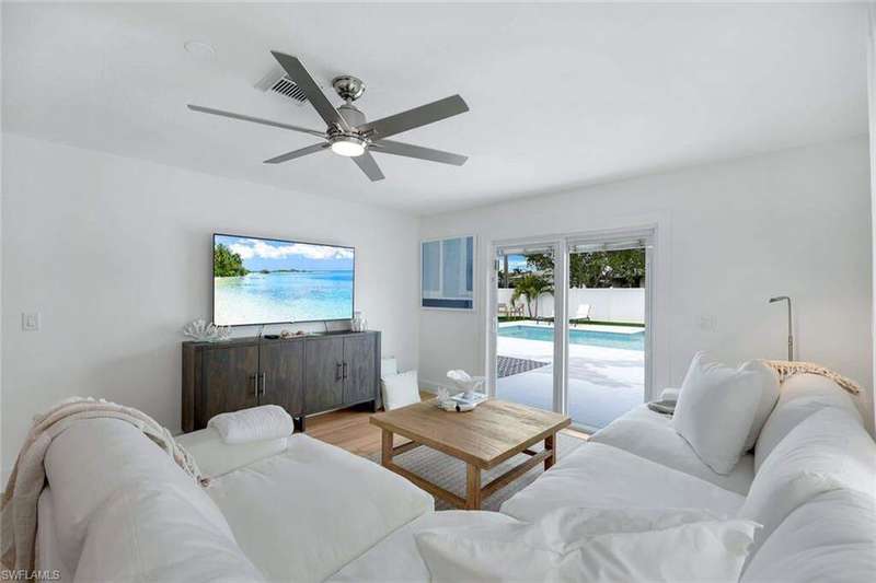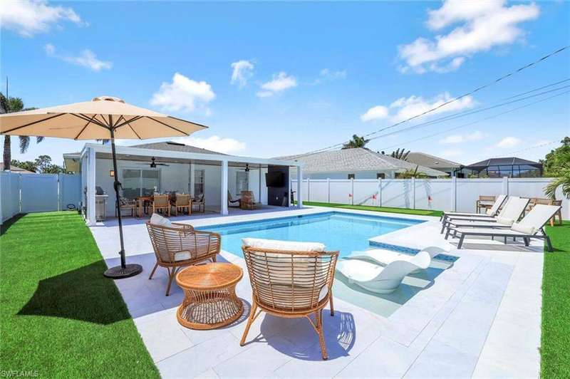 UPDATE----NEW OUTDOOR OVERHANG WITH KITCHEN IS NOW COMPLETED! Dream investment opportunity with proven rental history awaits with this fully remodeled 3-bedroom, 2-bathroom home in Naples Park and all the upgrades you've been searching for. Offered turnkey and fully furnished with brand-new furniture throughout, this residence is move-in or rent-out ready, delivering immediate returns for investors. Inside, the open-concept layout is designed for modern living and entertaining. The gourmet kitchen with upgraded countertops and hardware, an eat-in breakfast bar, and an adjacent bar with a wine cooler seamlessly blends with the living room. From there, the living space flows effortlessly through sliding doors to the resort-style backyard, making indoor-outdoor living a breeze. The resort-style backyard is a private oasis designed for relaxation and entertaining. It features a brand-new heated saltwater pool, new 12X30 overhang with outdoor kitchen, low-maintenance turf grass, and new vinyl fencing, creating the ultimate outdoor living space. Whether you envision lounging poolside or hosting gatherings, this backyard is ready to impress. Plans for a stylish overhang off in the rear of the home by the pool will add even more charm to this luxurious retreat. The upgrades continue with a new recreational space in the garage. This versatile area is perfect for a home gym, game room, or additional entertainment space, offering endless possibilities to customize the home to suit your lifestyle. Situated in the highly desirable X-500 flood zone, the property requires no flood insurance, offering peace of mind and cost savings. Located just over a mile from Vanderbilt Beach and Wiggins Pass and within walking distance of Mercato, where fine dining, luxury shopping, and vibrant nightlife await, the location is truly unbeatable. With no HOA or rental restrictions, this property offers unmatched flexibility for homeowners and investors alike. Whether you're seeking a lucrative rental property, a tranquil vacation retreat, or your forever home in paradise, this Naples Park gem has it all!