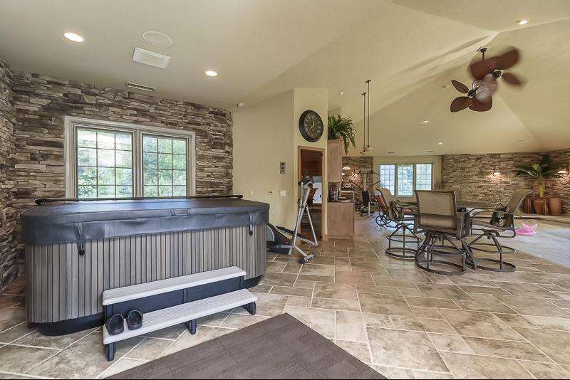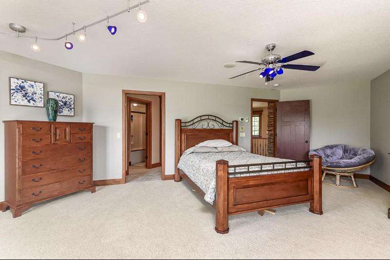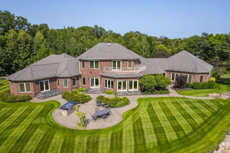 An Executive Estate with a gated entrance. This private property welcomes you with a 4,400-foot lighted driveway leading up to the luxurious home that boasts over 7,000 s.f. of living space on over 414 acres and a pond. Inside the home there is a spacious 3 car garage, in-floor radiant heat, Amish-honed wood floors, custom-made granite countertops, stone accents, and luxury finishes. The kitchen is a Chef's dream, featuring commercial-grade stainless steel appliances, a large island to provide additional seating, prep space, and walk-in pantry. With 3 total bedrooms and 3 full baths, 2 1/2 baths, there is plenty of room for all. The 34x20 master bedroom on the main level with panoramic views, other bedrooms on upper. Indoor pool, sauna and hot tub. Over the top lower level bar/entertainment space. Extra detached garage with 1,600 s.f. living quarters built in 2003. As well as a 480 s.f. cabin. Outdoor trails, private boat landing, views and exquisite peace and privacy with approximately 5,000 + Wisconsin River water frontage. The lot is mostly wooded with some wetlands, excellent for hunting and fishing. Amherst Fiber Optic 5G, internet is wired to the main shed. Land options available with home. Call today for a private Showing.