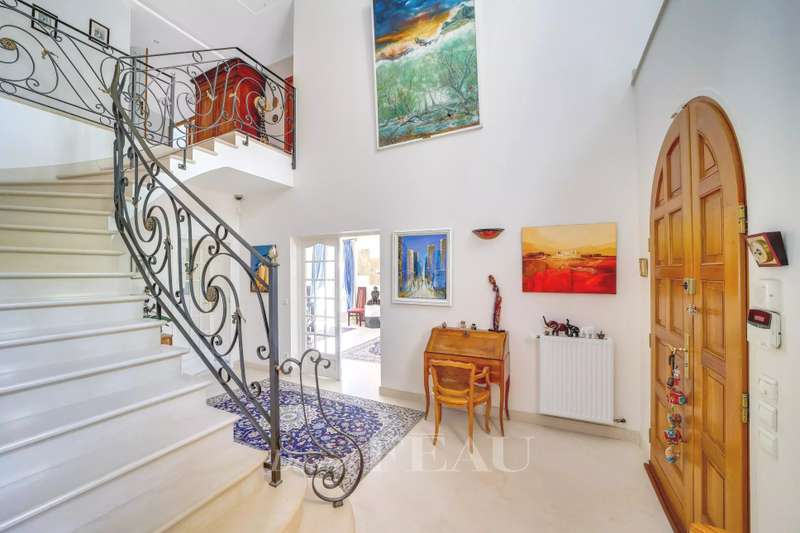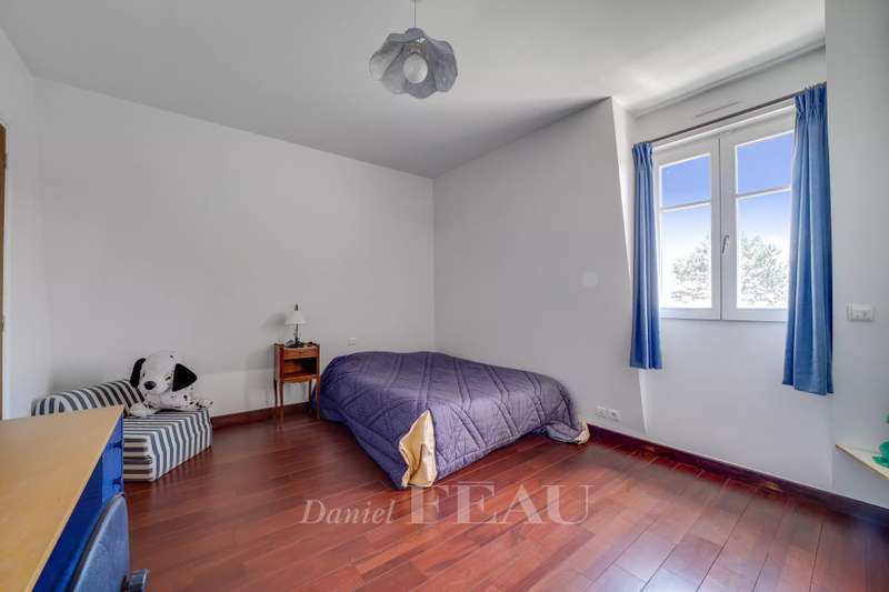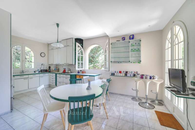 This property offering 480 sqm of floor space and about 300 sqm of living space bathed in sunshine is set in an over 1000 sqm plot in the sought-after Gressets neighbourhood. An entrance hall leads to a near 75 sqm south-east facing living/reception room with a stone fireplace, a separate kitchen with a dining area, a study or possible bedroom, a storage room, a guest wc, and a utility room. Several terraces and the garden enjoy open views. The upper floor comprises a bedroom with a bathroom, a spacious master suite with a terrace, a dressing room, a bathroom, a shower room and a wc, three further bedrooms (two with shower rooms), a bathroom and a separate wc. With a convertible attic. The basement comprises a recreation room, a shower room, a wc, a boiler room, two storage rooms, a wine cellar and a former photo lab. With an 8-car garage and outdoor parking space. In a peaceful environment in the immediate vicinity of Marly State Forest, 400 metres from the station, and a convenient distance from the schools.