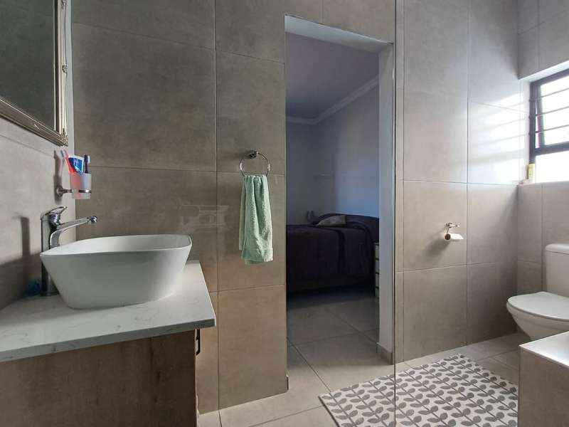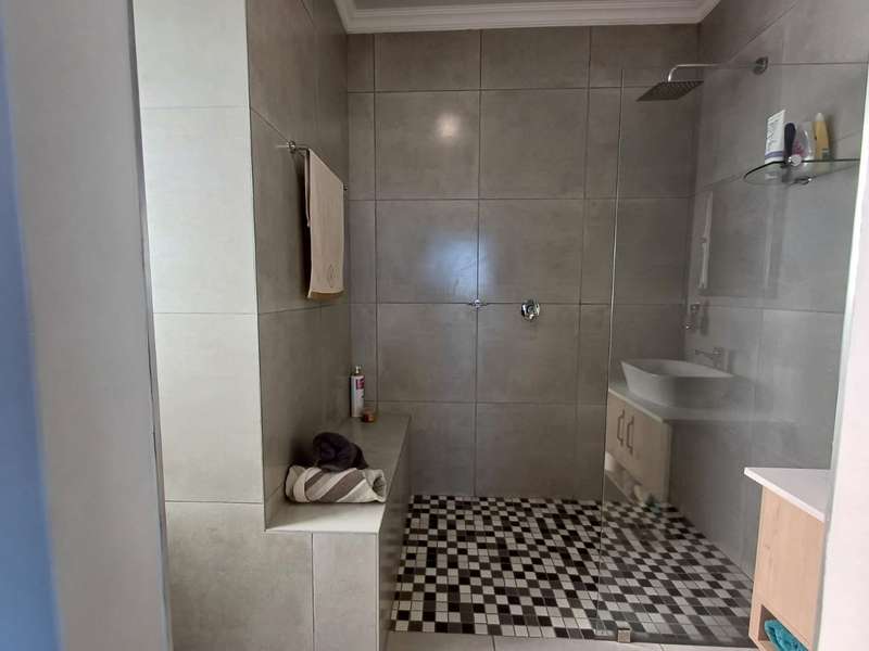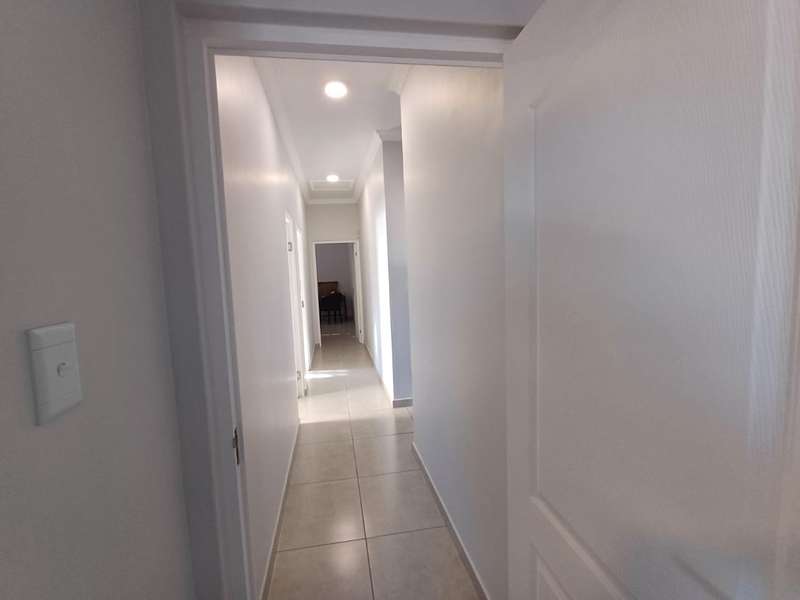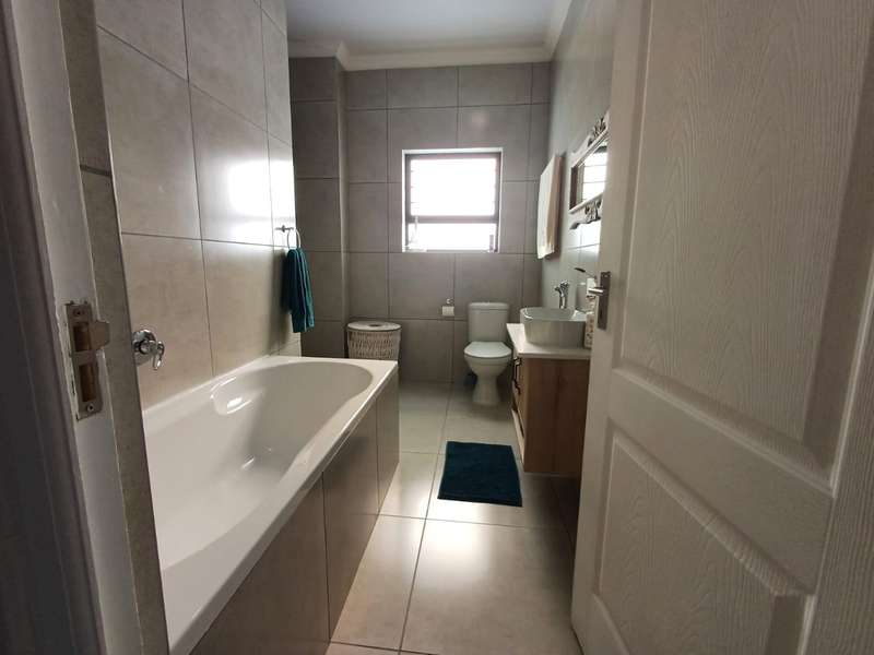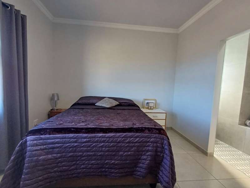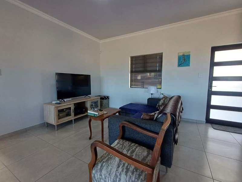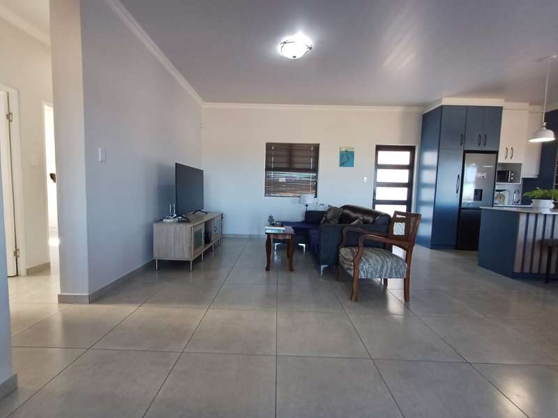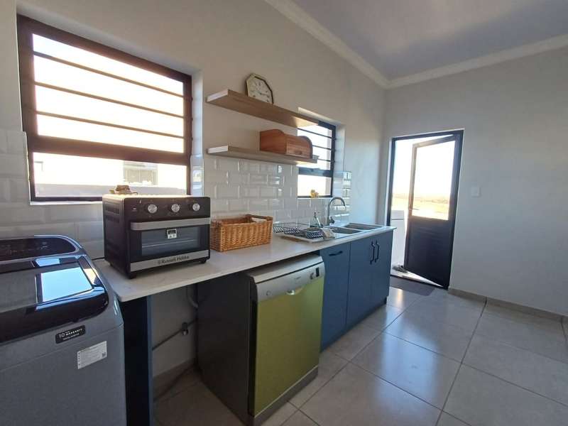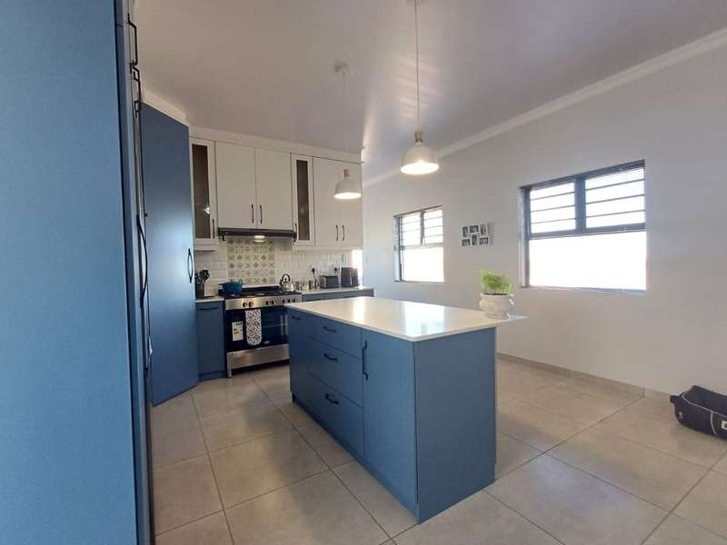 This home offers a calming atmosphere, highlighted by its unique soft blue finishes that evoke the serene hues of the ocean meeting the western horizon. The west-facing braai area is perfectly positioned to enjoy stunning West Coast sunsets while entertaining guests. An open-plan kitchen, dining, and lounge area creates a spacious and welcoming environment—ideal for family life, where everyone can be together while meals are prepared and homework is done. The kitchen features an island countertop for additional workspace, along with a gas hob and electric oven. A separate scullery and laundry area leads off the kitchen, with direct access to the backyard. The double garage conveniently connects to the scullery/laundry area and is fitted with an automatic garage door. The generously sized main bedroom includes an en-suite bathroom with a shower, toilet, and basin, designed for comfort and ease of access—particularly suitable for elderly residents. A full family bathroom includes a bath, shower, basin, and toilet. Two additional bedrooms are equipped with built-in cupboards. Additional features include a paved driveway and a fully walled property for privacy and security.