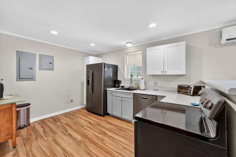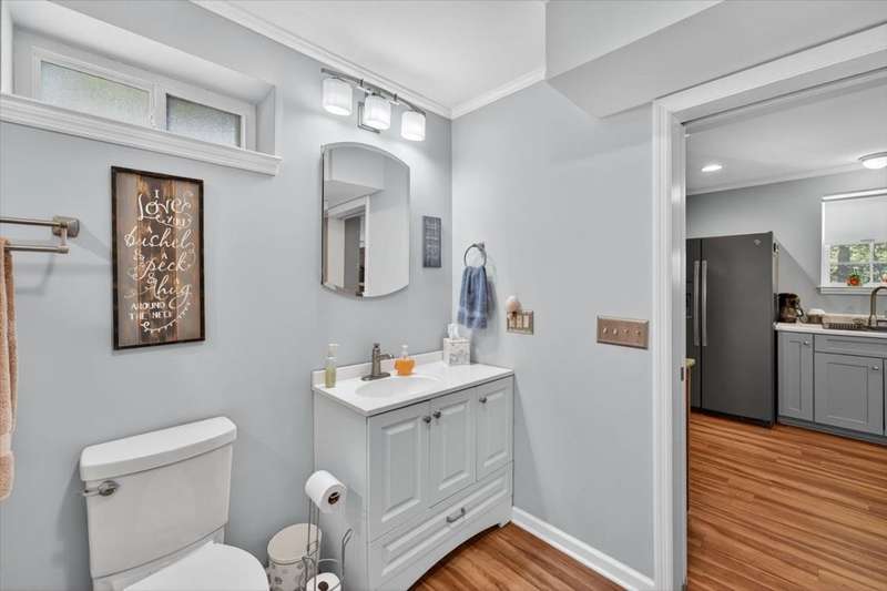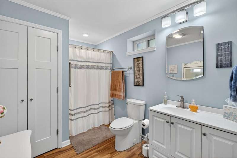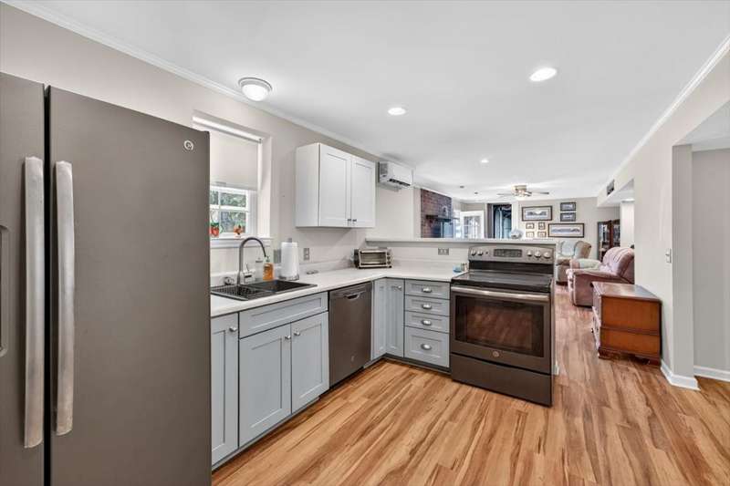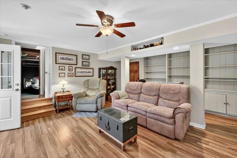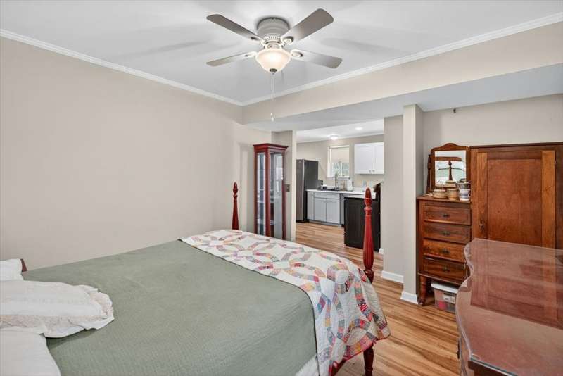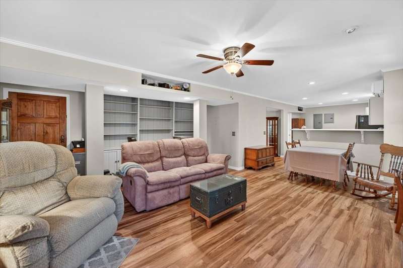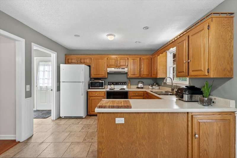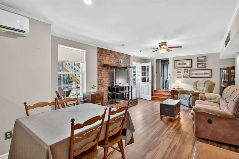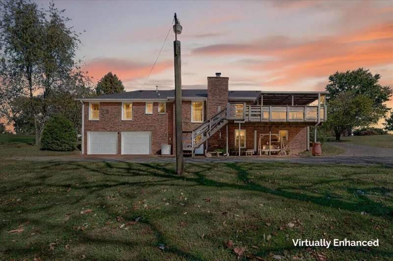 No HOA!! Offered for the first time on the MLS, this classic 1987 ranch showcases original charm and it's the perfect canvas to customize and make it your own!!! Spacious 3-bedroom, 2-bath on the main level, ranch-style home with a full finished basement. The basement offering an in-law or teen suite living! This one-level home features two full kitchens, multiple living areas, and ample flexibility for extended family or guests. Situated on nearly 1 acre, the property includes a 2-car garage with a grease/service pit area, large driveway with plenty of parking, storage sheds, and covered deck-perfect for entertaining or just relaxing. Home also has an abundant storage off the garage area, with a great weather safe place. The lower level offers a zero-step private entry, ideal for accessibility or separate living quarters. Main level has a formal LR, DR, 3 Bedrooms and enjoy the cozy wood burning fireplace off the Den. Home has been recently connected to sewer. Enjoy peace of mind with a newer roof. A great home for multi-generational living with plenty of space inside and out!