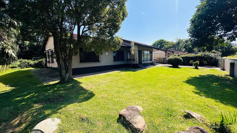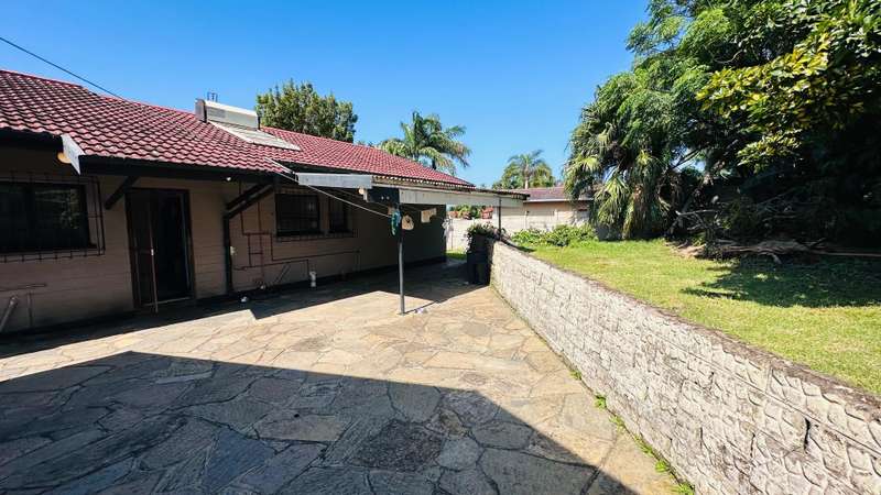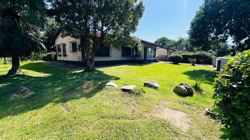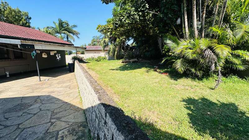 - Partly paved yard with grass, flowers, and well-manicured trees