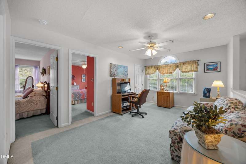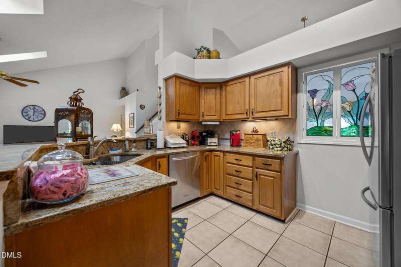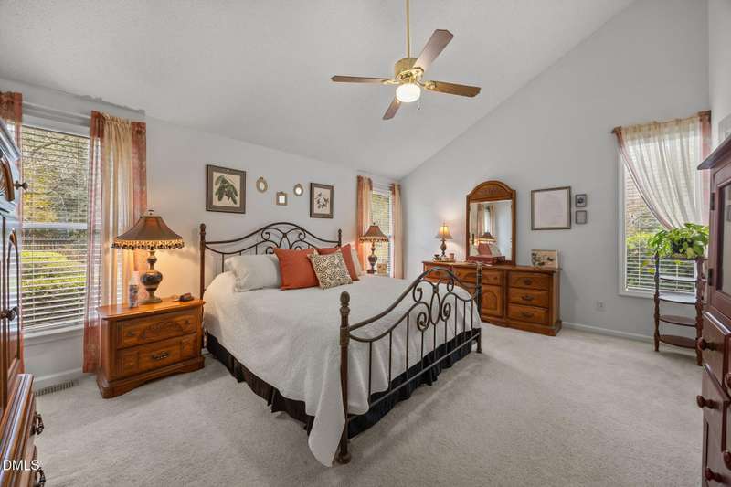 A Two Story Foyer welcomes you to this charming Alyson Pond home with an Open Floor Plan in the heart of North Raleigh. Formal Living and Dining Rooms off the foyer adjacent to the Kitchen. Kitchen features Granite Countertops, Tile Backsplash, Stainless Steel KitchenAid Appliances including Dual Fuel Gas Range, and Eat-in Nook. Refrigerator Conveys. Family Room offers great Natural Light, Gas Fireplace, and Ceiling Fan. First Floor Primary Bedroom with Vaulted Ceiling. Jetted Garden Tub, Separate Shower, Dual Vanities, and Walk-in Closet in the Primary Bath. Upstairs is a Loft/Bonus Room that leads to the Two Additional Bedrooms and Full Bathroom. Screened Porch opens to the Deck overlooking the Fenced Backyard. Recently installed Fiber Cement Siding and Fresh Exterior Paint. 3 Car Garage. Great Community Amenities including Clubhouse, Pool, Tennis, Basketball, Pond, and Playground.