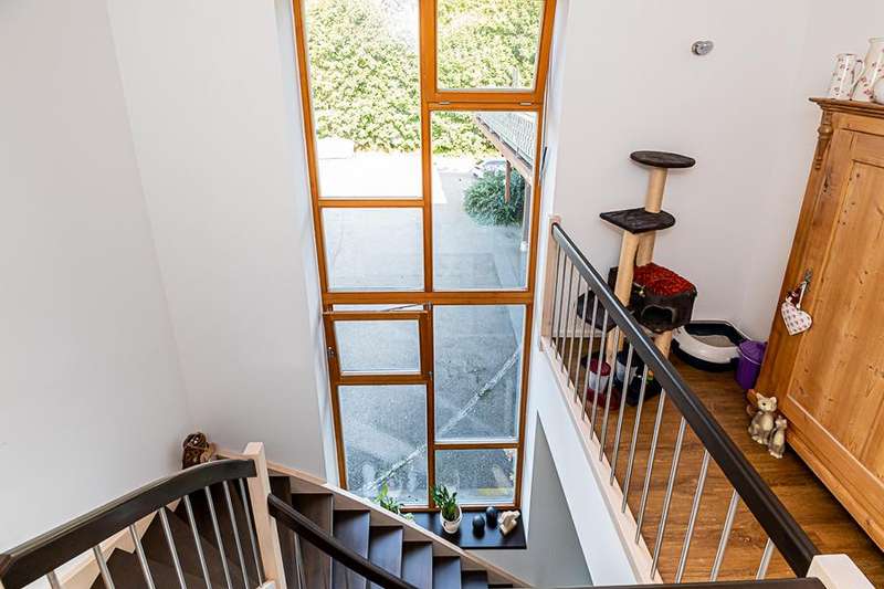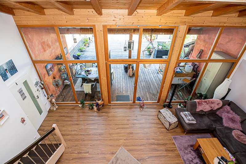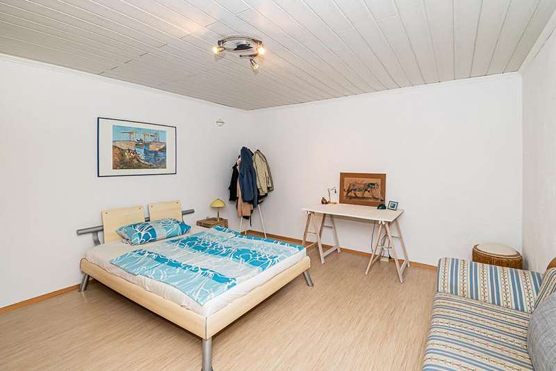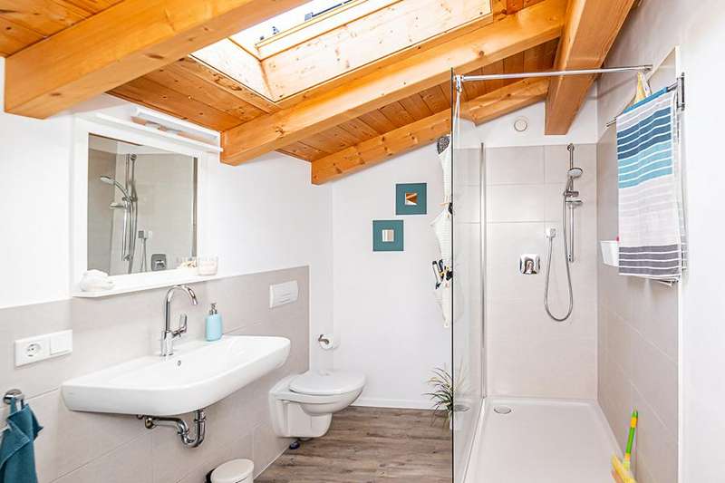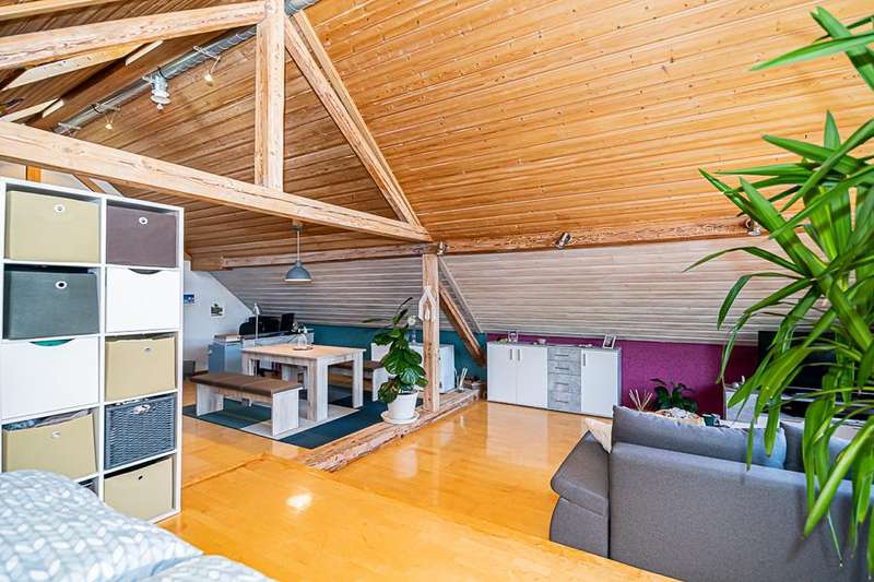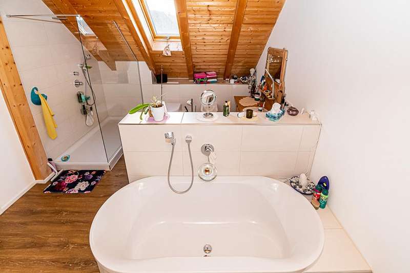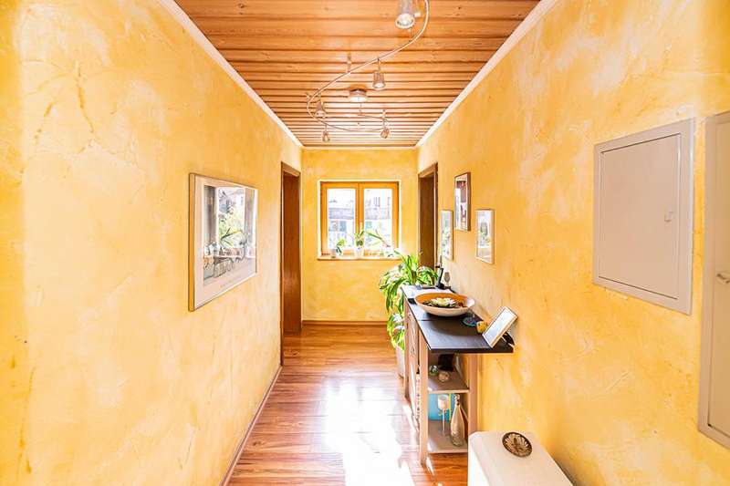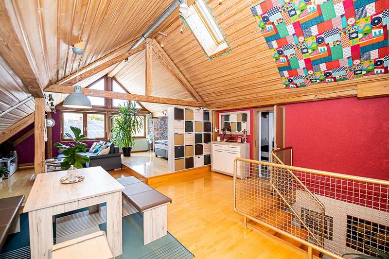 This well-maintained property is a two-family house with approx. 260 m² of living space, which has been renovated again and again in recent years and is ready for immediate occupancy. Entering the hallway and staircase on the first floor, you will find the newly renovated guest toilet and the staircase that leads you upstairs to the first apartment. Here are two children's rooms, a bedroom, the bathroom with tub and the kitchen. Via the hallway it goes into the converted attic, here everything is openly designed, so you can let your creativity play. In addition, here is still a bathroom newly renovated in 2019. Back on the upper floor it goes to the second apartment, which was completely redesigned in 2014. Here everything is set up to feel good. The complete room living, dining, kitchen have been designed very open and with a lot of wood and can be heated in cold days with a wood stove that provides soothing warmth. The staircase in the living area leads to the attic, which provides a pleasant ambience with the open roof truss. Here you will find the bedroom with dressing room and the spacious bathroom with tub and a very large open shower. A highlight of the house is the terrace of about 90 m², of which about 20 m² are covered, here you can relax in peace, barbecue or just enjoy the sun. This was built on the carport suitable for three vehicles. With the current owners, the first floor was used for storage rooms and workshop, but can also be converted into an apartment without any problems. Furthermore, there is a hall of about 360 m² on the property, which was currently used as a grocery store, but can also be converted for something new at any time. Parking spaces and a small garden are available on the approx. 1900 m² large property. If this property has aroused your interest, you are welcome to contact us.
