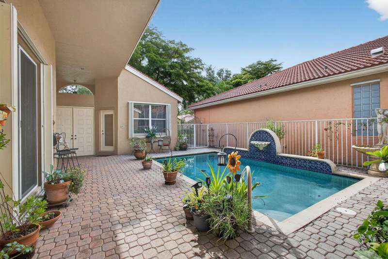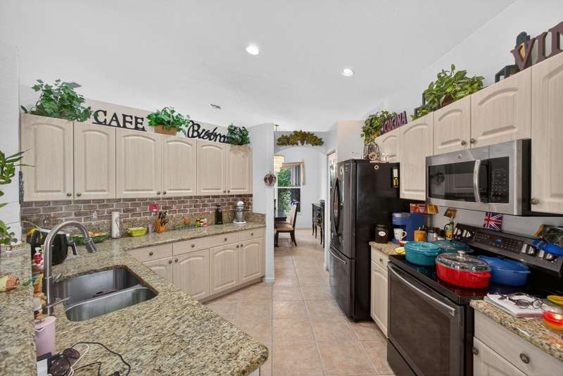 LOCATION LOCATION LOCATION. Great lake front home w/large pool & decretive fountain in yard plus a Guest House w/BR & full BR. Home equipped w/accordion hurricane shutters. Great Mother/Daugher! A/c offers ultra violet light plus vaulted ceilings, fans & fixtures throughout. This home is a True 3 Bedroom, Full 3 Bath with closets & doors in each BR. Primary bedroom has boasts Glass Sliders from window option for beautiful lake views plus 2 large walk in closets! Open Kitchen offers granite counters, cafe bar double sided SS sink, large pantry & more. Formal Dining area. Knock down finishes on walls & lots of recessed lighting. Primary bath offers soaking tub, walk in shower, dual sinks & private commode w/pocket door. Main home offers tile throughout. Don't miss this one. Won't last long