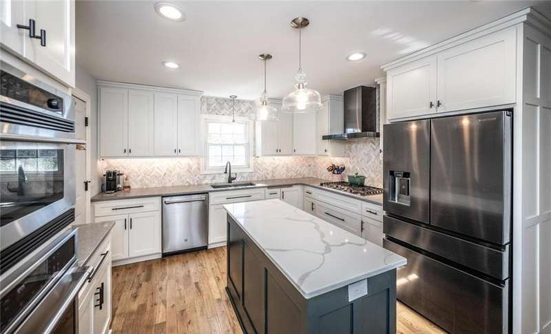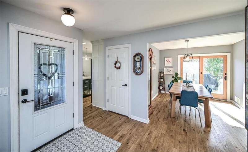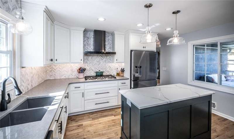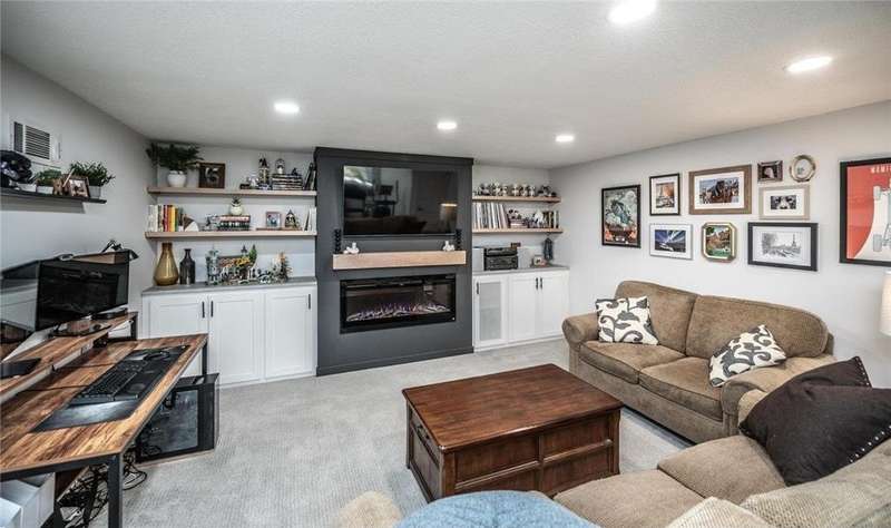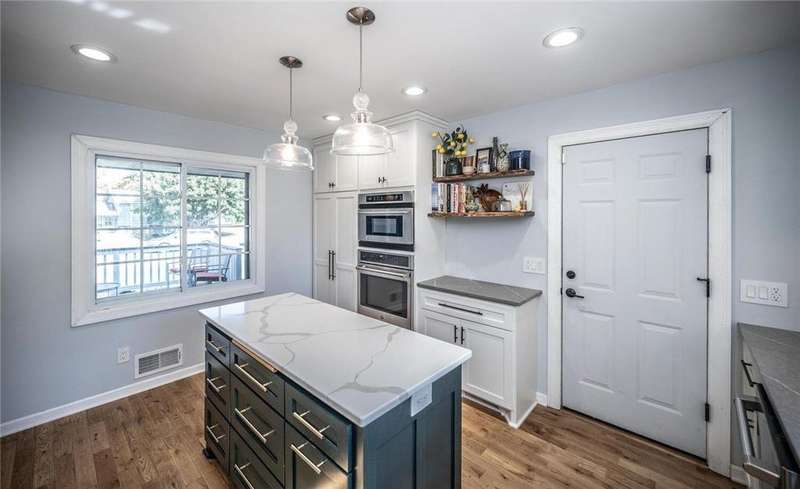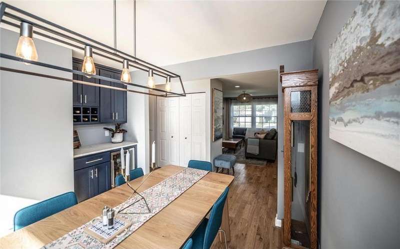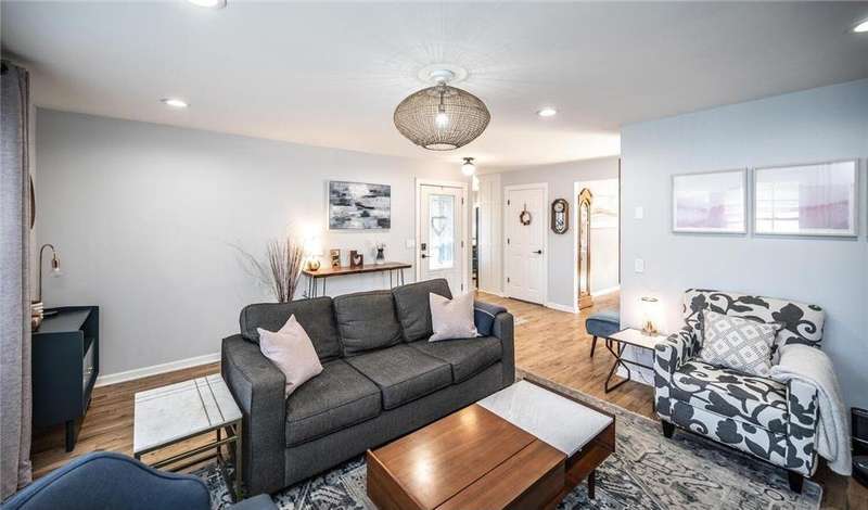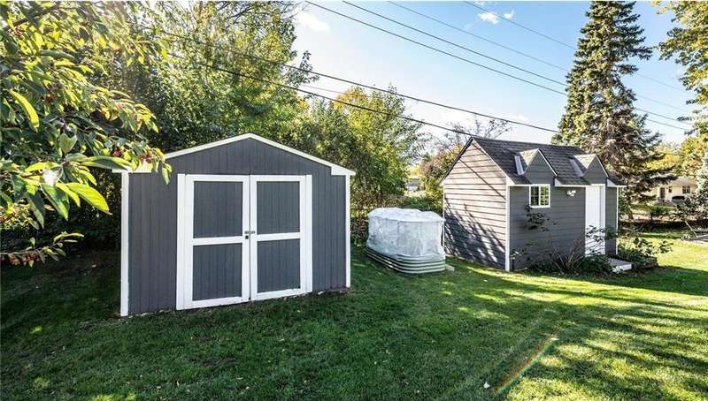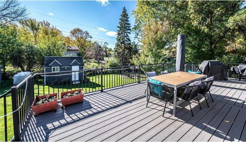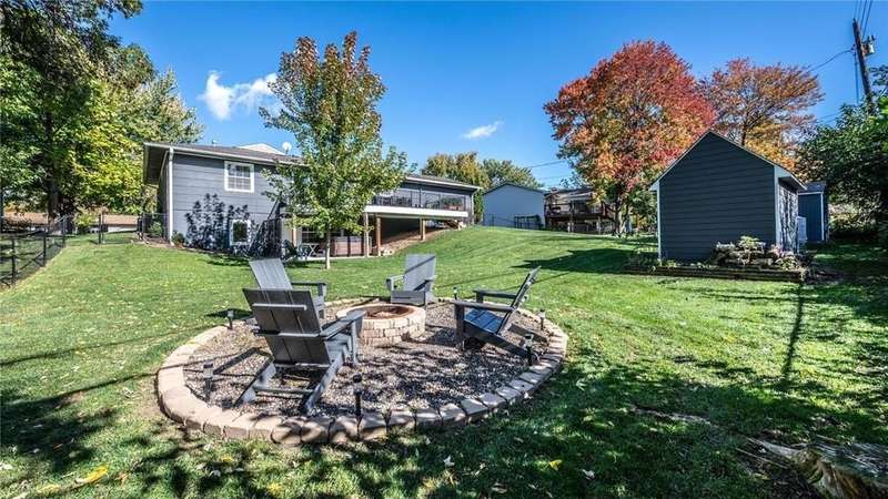 Extra-sharp walkout rambler enhanced w/ mature trees & large fenced backyard, great for outdoor play & get-togethers. This lovely home reflects pride of ownership & offers many nice features, upgrades & recent updates! It is conveniently located in a great neighborhood w/ parks, restaurants & shopping nearby! 3 delightful bedrooms, 2 tiled baths, tasteful decor, 5- & 6- panel doors, custom window treatments. Large front deck w/ covered entry, beautiful beveled glass front door, large living room w/ windows to front. White oak flooring flows throughout main level. Dining room w/ new built-in beverage refrigerator, wine rack, cabinets & quartz countertop. New large maintenance-free custom deck w/ metal railings & stairs to large fenced backyard. Completely remodeled kitchen features under-cabinet lighting, pantry w/ pull-out drawers, new soft-close custom cabinets & drawers. New marble backsplash, quartz countertops, new center island, pull-out trash & recycling, live-edge walnut shelving. New stainless steel appliances include refrigerator w/ water & ice dispenser, gas range w/ vented hood, Advantium halogen oven/microwave, & dishwasher. Large window w/ nice backyard views. Newly remodeled lower level features spacious family room w/ daylight windows, new Karastan carpeting, electric fireplace flanked by shelving, cabinets & maple mantel, walkout to backyard w/ firepit, playhouse & shed. Large laundry/utility/storage room. New Rheem furnace & central AC (2021). Attractive curb appeal w/ shutters on front. 2-car garage, EV-ready (exclude charger), newer 8-zone underground sprinkler system, raised garden, playhouse w/ electrical service, shed w/ double doors. Great neighborhood & more!