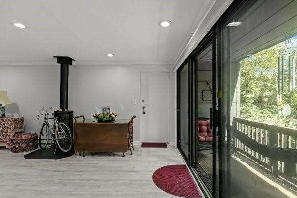 Welcome to Ternay Garden, a hidden gem on Providence’s East Side. This unit combines space, light, and comfort in a beautifully landscaped, private setting just steps from the best the city has to offer. This 2nd floor condo offers 1,060 square feet of living space, with 2 bedrooms, 1.5 baths, and a versatile office/bonus room. The open living area is bright and airy, featuring a newly installed wood stove, a skylight, and sliding glass doors that lead to an oversized private deck. A welcoming front porch provides additional outdoor space to enjoy. The eat-in kitchen has been refreshed with newer appliances, while hardwood floors, recessed lighting, fresh paint, and new blinds give the home a modern, move-in ready feel. Convenience is built in with in-unit laundry, off-street parking, and a private rear entrance. Ternay Garden’s ideal location puts you minutes from Downtown Providence, the train station, major hospitals, Blackstone Boulevard, Brown University, Moses Brown, and RISD. Step outside your door and enjoy the cafés, shops, and restaurants of Hope Village—all part of the vibrant East Side lifestyle.