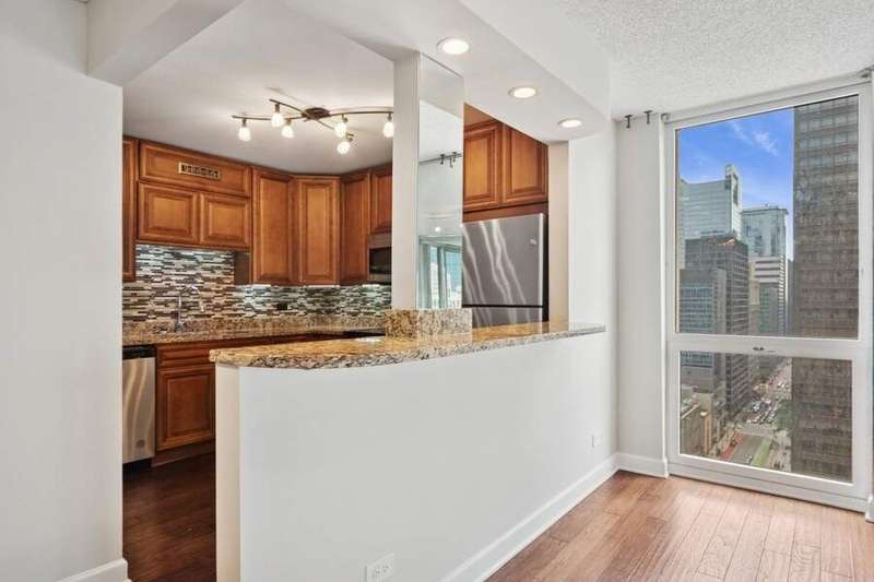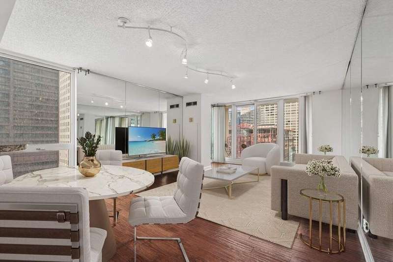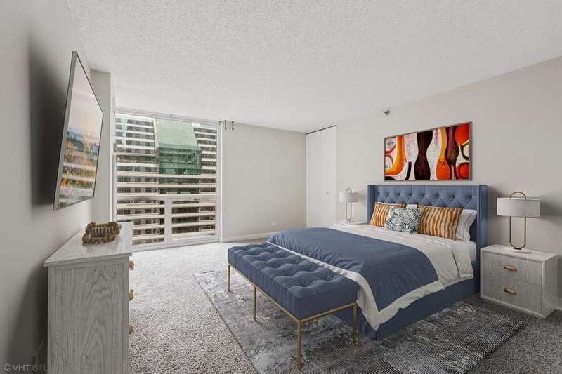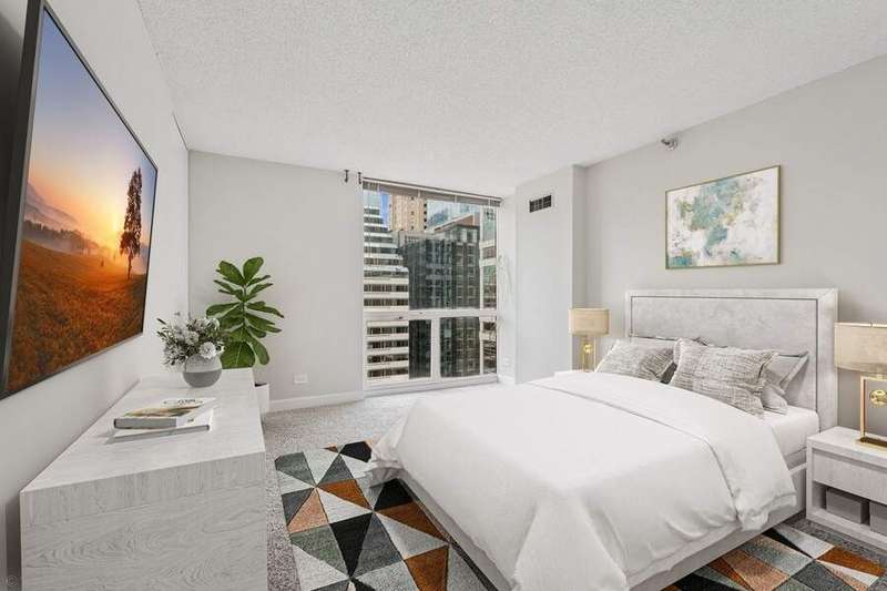 **Stunning Southwest Corner Residence in the Heart of Chicago's Iconic Theater District** Welcome to an exceptional residence perfectly situated in the vibrant Chicago Loop. This expansive, sun-drenched southwest corner unit offers dramatic floor-to-ceiling windows framing panoramic city and sunset views, visible from nearly every room and your private balcony. Designed for modern living and effortless entertaining, the open-concept living and formal dining area flows seamlessly into a sleek, contemporary kitchen featuring crisp white cabinetry, stainless steel appliances, quartz countertops, and a convenient breakfast bar. The home features hardwood floors, brand-new carpet in bedrooms, and is Newly Painted. The spacious primary suite is a tranquil retreat, complete with generous closet space and a beautifully appointed bathroom. Additional highlights include wide-plank wood laminate flooring throughout, custom upgrades, and dedicated storage. Set within a full-amenity building, residents enjoy 24-hour door staff, an indoor pool, sundeck, state-of-the-art fitness center, bike storage, laundry room, and direct access to Chicago's famed Pedway system, connecting you to shopping, dining, and cultural landmarks. A+ location just steps from Michigan Avenue, Millennium Park, the Riverwalk, premier dining, transportation, and entertainment venues. **Investor friendly-no rental cap. Monthly assessments include all utilities except electric.** Don't miss this rare opportunity to own a spectacular corner unit in one of downtown Chicago's most coveted addresses! NOTE: There isn't an in unit washer and dryer however building allows installation for an in unit washer and dryer. There is a Laundry facility in the building.