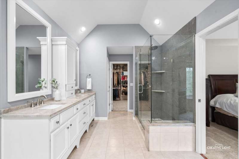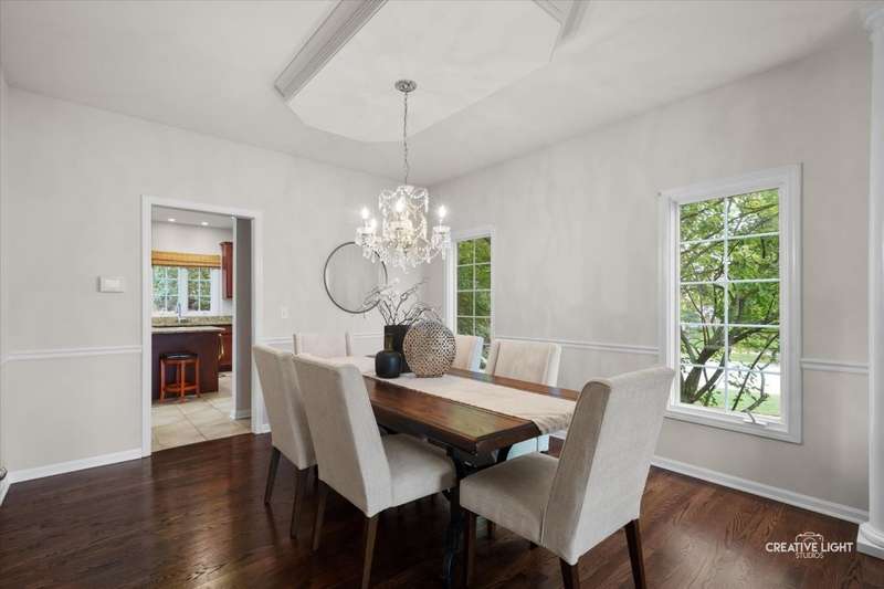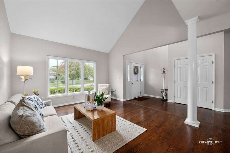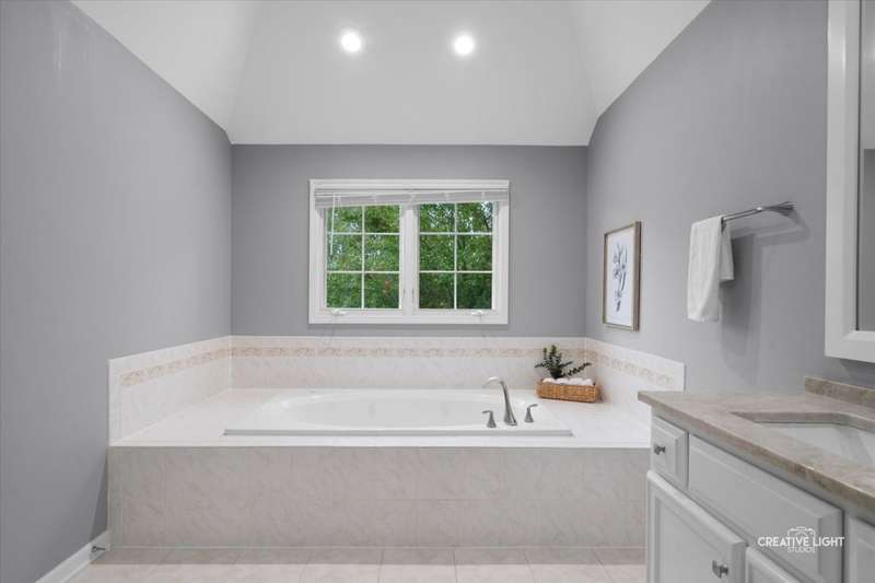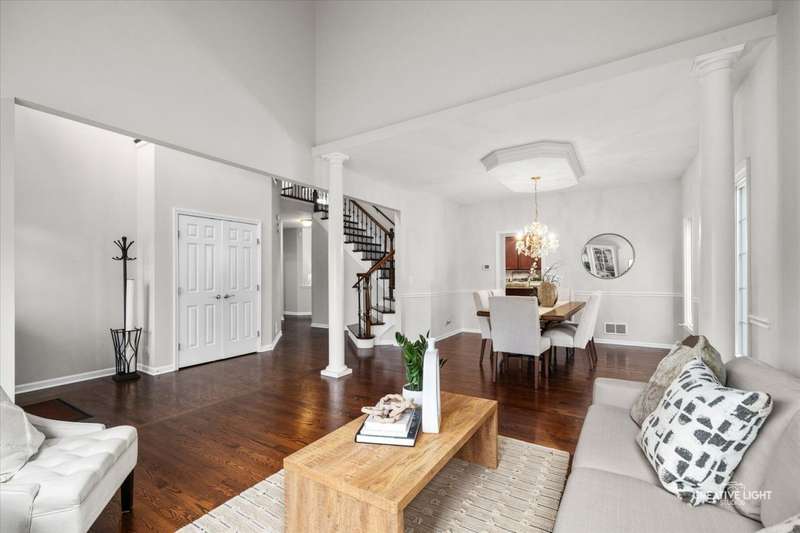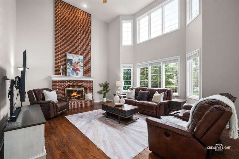 Style and sophistication shine throughout this beautifully refreshed home! Recently updated with fresh City Loft paint & new carpet upstairs. Hardwood floors were added & existing floors refinished on the main level. Not your typical floor plan - this home offers thoughtful design and distinctive details throughout. The impressive two-story foyer features a turned staircase with stained treads and wrought iron spindles. The dramatic Living Room with vaulted ceiling opens to the Dining Room, perfect for entertaining. The spacious Kitchen features an oversized island, granite countertops, stainless steel appliances, and a large walk-in pantry. The heart of the home is the two-story Family Room, with a floor-to-ceiling brick fireplace and a wall of windows that fill the space with natural light. A private main-floor Office is tucked away at the back of the home and is adjacent to a full bath-ideal for guests or an in-law arrangement. The first-floor bath has been updated with a white vanity, quartzite countertop, new mirror, and lighting. Upstairs, the Primary Suite features a vaulted ceiling and a spa-like bath with an updated dual-sink vanity, quartzite countertop, whirlpool tub, and newly tiled shower. Bedrooms two and three share a refreshed hall bath with dual-sink vanity, while the fourth bedroom includes a private ensuite bath. Both feature updated white vanities with quartzite countertops and modern fixtures. The finished lookout basement adds exceptional living space with Rec Room, kitchenette with sink, and dishwasher, plus a full bath with tub/shower combo. The Theater Room is great for family movie night! The projector, screen & surround sound speaks remain with the home! Two level entertaining outside with the deck & lower level brick paver patio with gazebo & fire pit. Transferrable Choice Home Warranty until 11/2026! 2 NEW WATER HEATERS 2019! NEW PATIO DOOR 2018! NEW SAMSUNG REFRIGERATOR 2018! NEW ROOF 2016! ADDED HARDWOOD FLOORS & REFINISHED 2014! Tall Grass is a swim & tennis community. Award winning Fry Elementary & Scullen Middle schools are on site. Route 59 shopping, restaurants are close by & the new Block 59 restaurant area is 4 miles north! Downtown Naperville is a short 15 minute drive! Seller would love a December 12/17 close date.