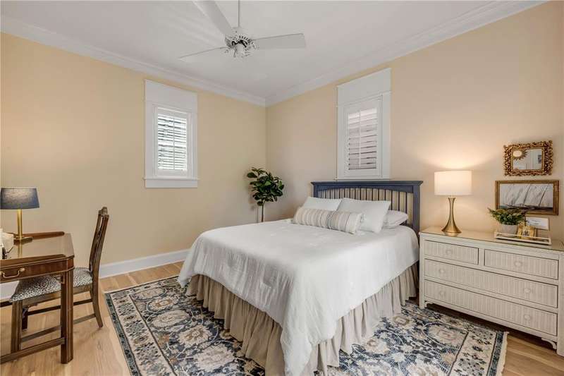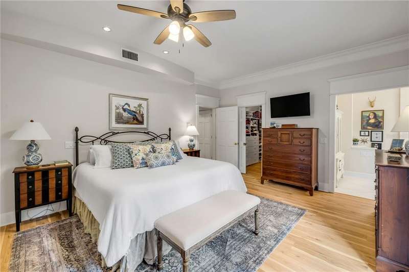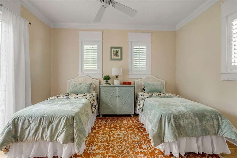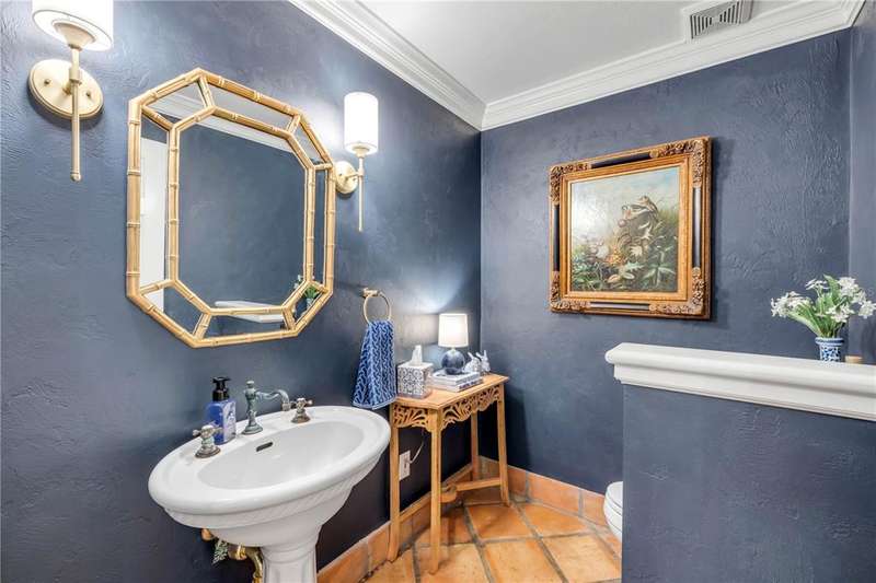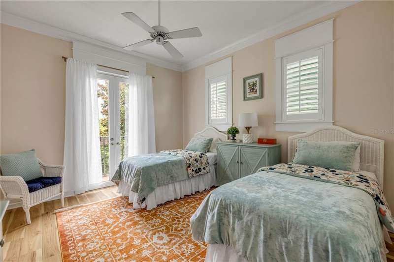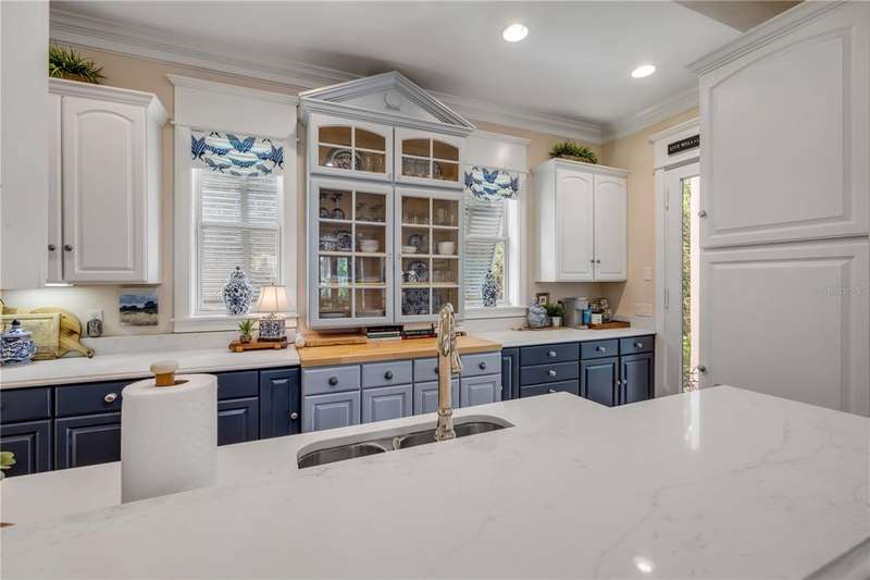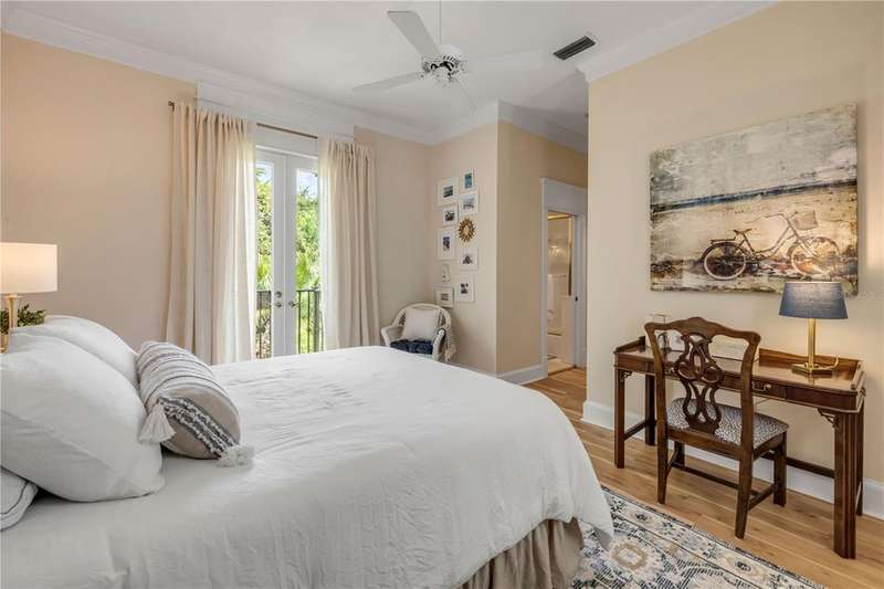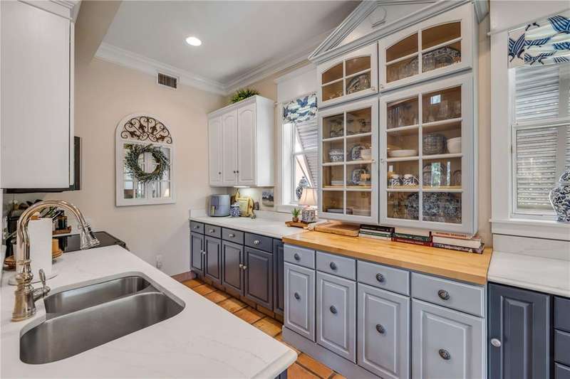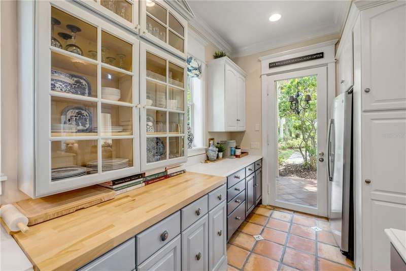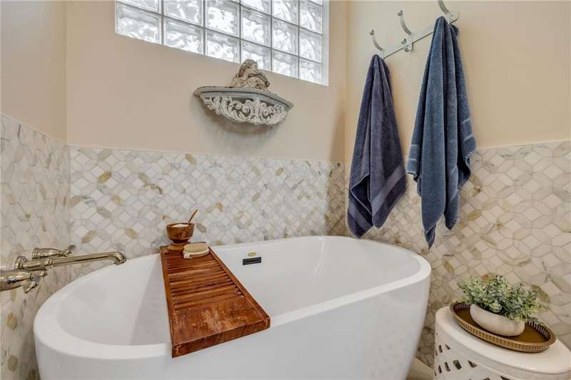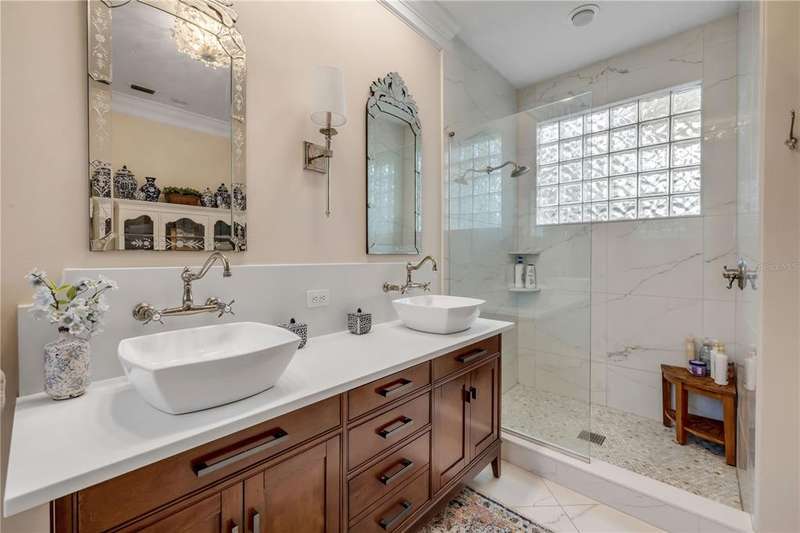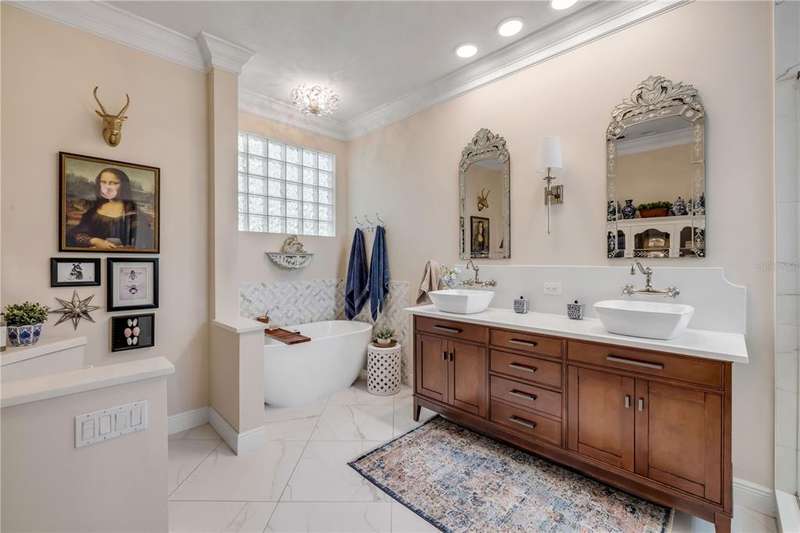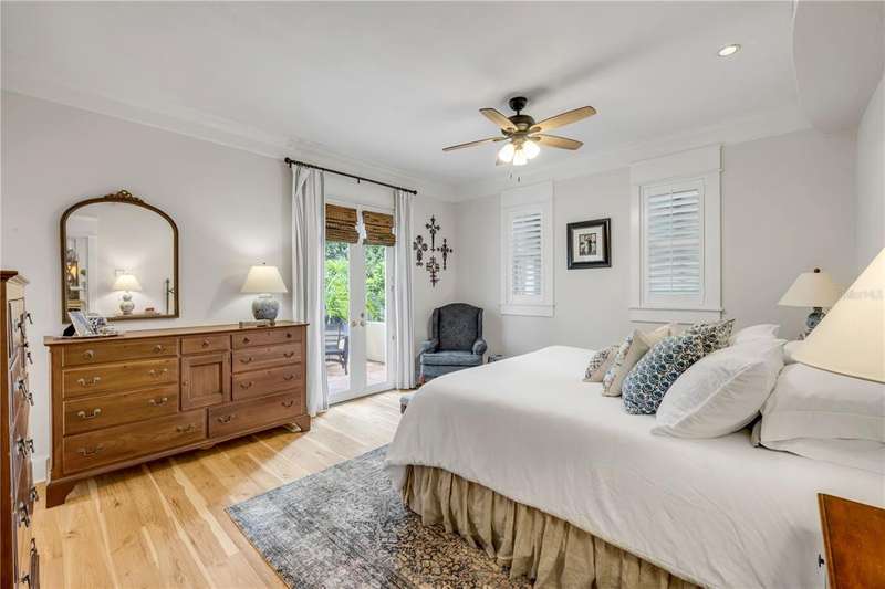 Under contract-accepting backup offers. Prepare to be wowed by this stunning 3 bedroom, 3 1/2 bath, Spanish inspired residence that exudes charm, warmth and casual elegance. Upon entering you are drawn to the large living area with vaulted ceilings, rich Mexican tile, a fireplace and charming clerestory windows inspired by Spanish hacienda design that allow for soft natural light. The thoughtfully designed layout includes a ground-floor primary suite for comfort and privacy, while each additional bedroom offers its own en-suite bathroom and French doors onto Juliet balconies. At the heart of the home is an expansive open-air/Lanai enclosed by a solid roof and walls, yet open to the breeze through large, screened windows. The home surrounds an open courtyard with lush landscaping and a beautiful Spanish-style fountain. Room for all of your toys in the extra deep 2 car plus golf cart garage. New metal roof, fenced yard, new LVP in bedrooms. This home offers a rare blend of style and serenity. A must see.