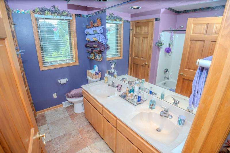 Welcome to this stunning, move-in ready home where pride of ownership shines throughout. Property offers a blend of modern comfort and functionality. A bright layout with high ceilings and an abundance of natural light. Located on a cul-de-sac in a quiet neighborhood. The primary suite is a private sanctuary with a spa inspired en suite with a jacuzzi tub, double sinks and newly remodeled walk-in shower. The retreat offers 2 walk-in his and her closets. Perched above the main level living space is a lofted office space. Granite countertops in kitchen. Basement is a walk-out. Relax on lg deck w/ new awning. Whether hosting, working from home, this property has it all, style, space and convenience. Schedule a private showing today. Home Warranty is included.