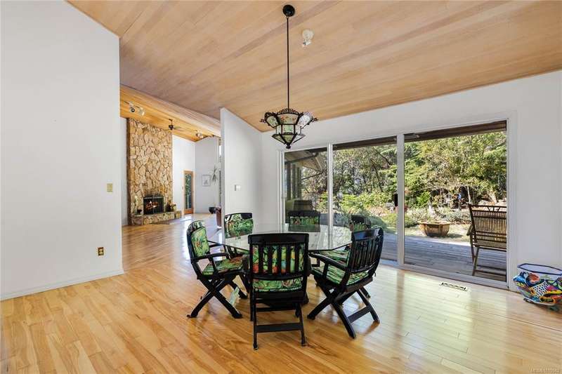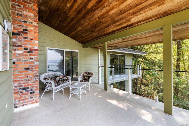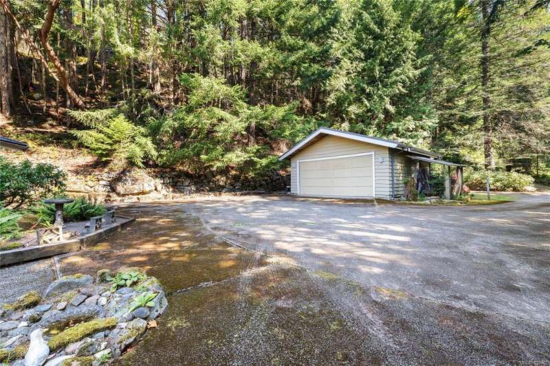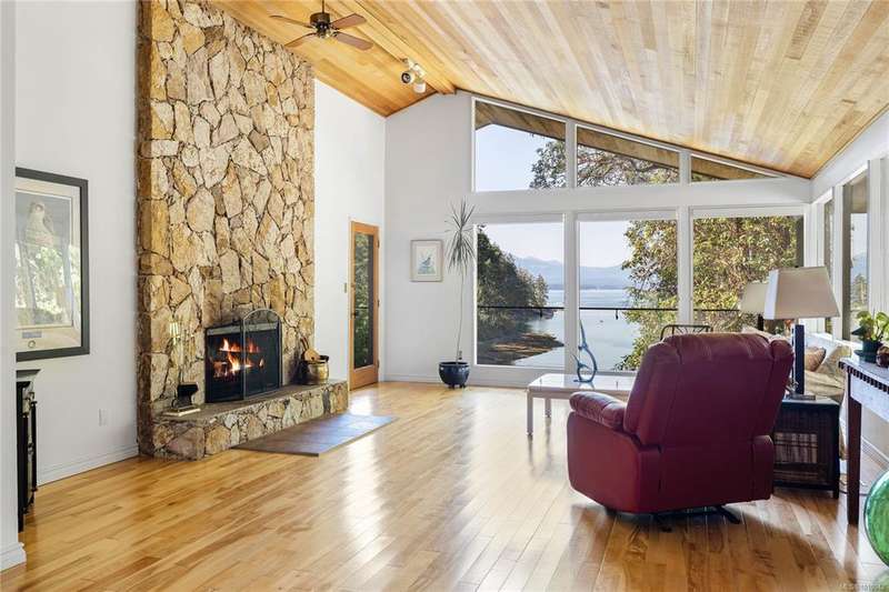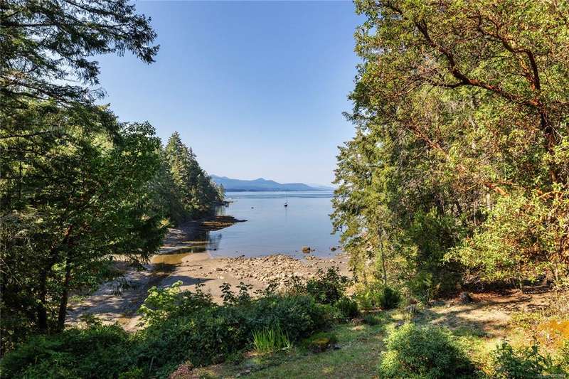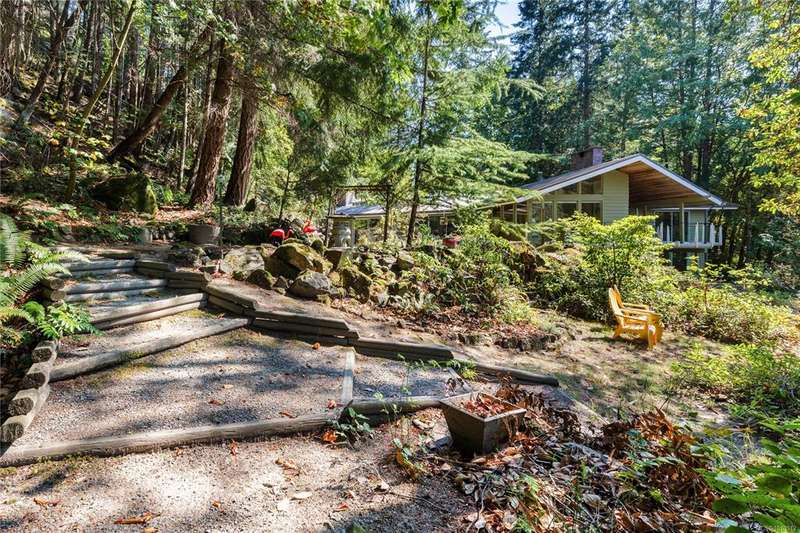 Chase an enchanted waterfall at the finest waterfront setting of 4.6 acres at the top of coveted Duck Bay in Vesuvius. A rare offering of a private, picturesque oceanfront estate with warm summer swimming, protected mooring buoy, amazing west facing sunshine, babbling brook and gifting gorgeous ocean to island views. The lovingly cared for 4,100 sq. ft home offers ample space for extended family and friends, convenient main floor living, vaulted cedar ceiling, hardwood flooring in primary rooms, in-floor heated bathrooms, and an efficient heat pump. A sweet two-bedroom cottage and a detached garage add to the features. The outdoor space around the home is beautifully landscaped with a zen flair and pretty ponds, shared with native westcoast forest and the coastal shoreline. A tranquil haven and an heirloom retreat waiting to make some special memories of a lifetime!