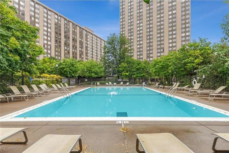 Fantastic location with expansive western views from the 15th floor. Hardwood and tile flooring, big windows and fantastic storage. Underground and outdoor parking available for additional fee and storage unit included. Gorgeous courtyard offers an in-ground heated pool; outdoor grills, flower gardens and walking paths. Close to everything downtown, and the river. HOA fee: $491.33 HOA, Cable TV $34.70, Internet $24.64. Amenities include on-site management, guest parking, fitness, rooftop terrace and community spaces. Recent improvements include backsplash, bathroom & closet system, dishwasher, painted cabinets and light fixtures.
