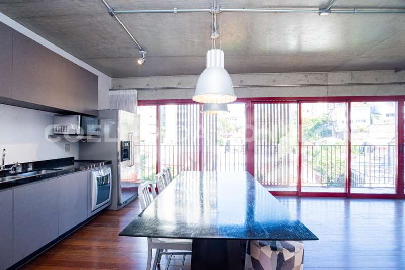 Apartamento estilo loft, 95m, com área total de 116m incluindo o depósito, terraço envidraçado e 2 vagas de garagem.